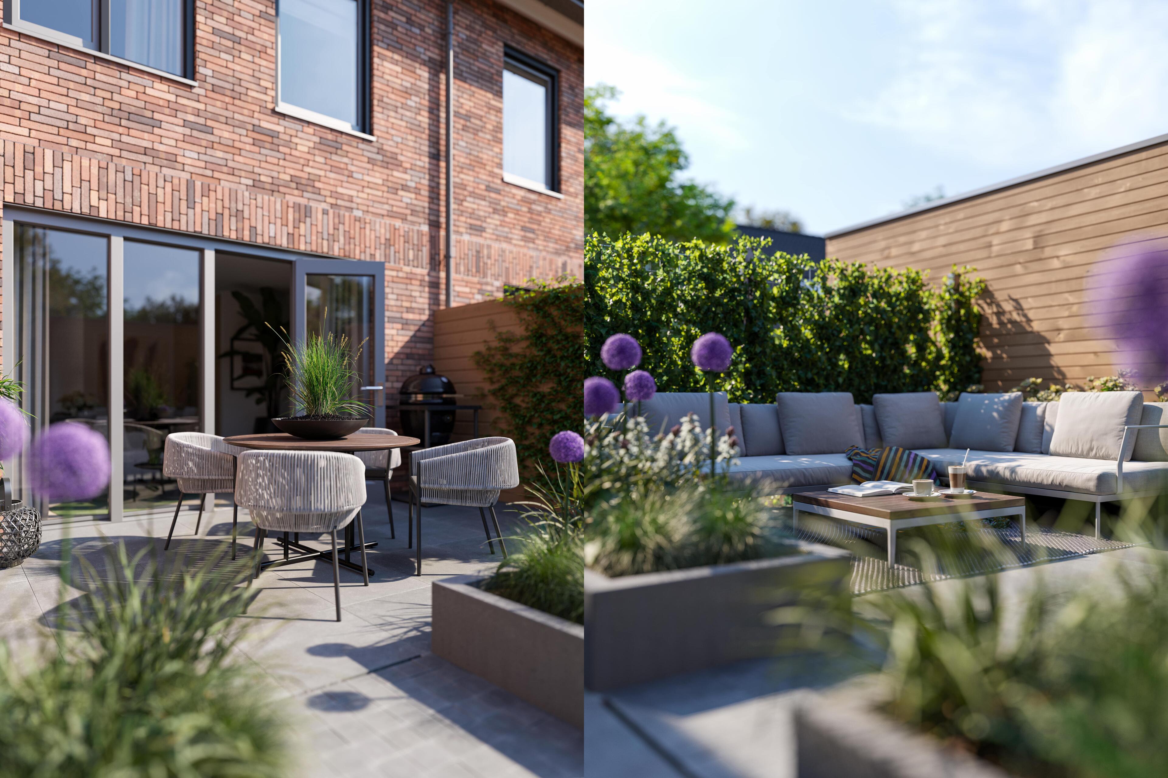 Geniet ’s ochtends aan de voorzijde onder je veranda van een kop koffie in de ochtendzon, terwijl de kinderen veilig spelen. Of stap vanuit je huis naar buiten en geniet van het uitzicht over het Buurtpark, waar groen en rust samenkomen.