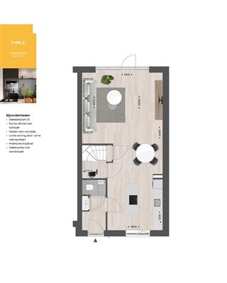 Er zijn meerdere mogelijkheden om deze woning helemaal naar wens aan te passen via opties. Zo creëer je bijvoorbeeld een extra ruime woonkamer door een uitbouw aan de achterzijde van 1.20m of 2.40m of verbind je binnen meer met buiten door de optie voor openslaande tuindeuren of een schuifpui. Of verplaats de keuken naar het midden van de woning of naar de achterzijde om een extra grote leefkeuken te creëren.