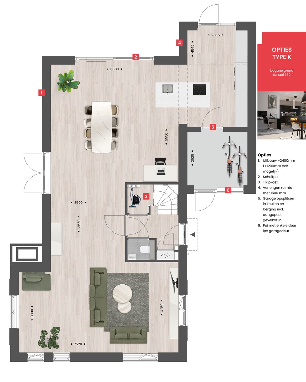 Bekijk de optieplattegronden hieronder voor alle mogelijkheden bij deze woning.