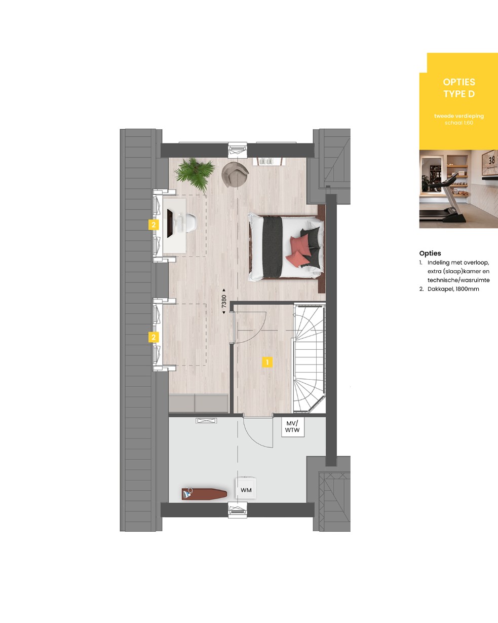 Bovendien is de woning zeer energiezuinig. Dat is goed voor het milieu én voor je maandlasten. Heb je behoefte aan extra ruimte voor je gezin, hobby of een thuiswerkplek? Ontdek dan de verschillende uitbreidings- en indelingsopties en maak van deze woning jouw ideale thuis.