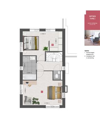Ook de verdiepingen zijn naar wens in te delen. Op de eerste verdieping kun je de badkamer vergroten voor meer comfort, of twee slaapkamers samenvoegen tot één royale hoofdslaapkamer met bijv. een inloopkast. Op de tweede verdieping richt je met diverse indelingsopties een volwaardige woonlaag in, met bijvoorbeeld twee extra slaapkamers, een tweede badkamer en een praktische was-/bergruimte.