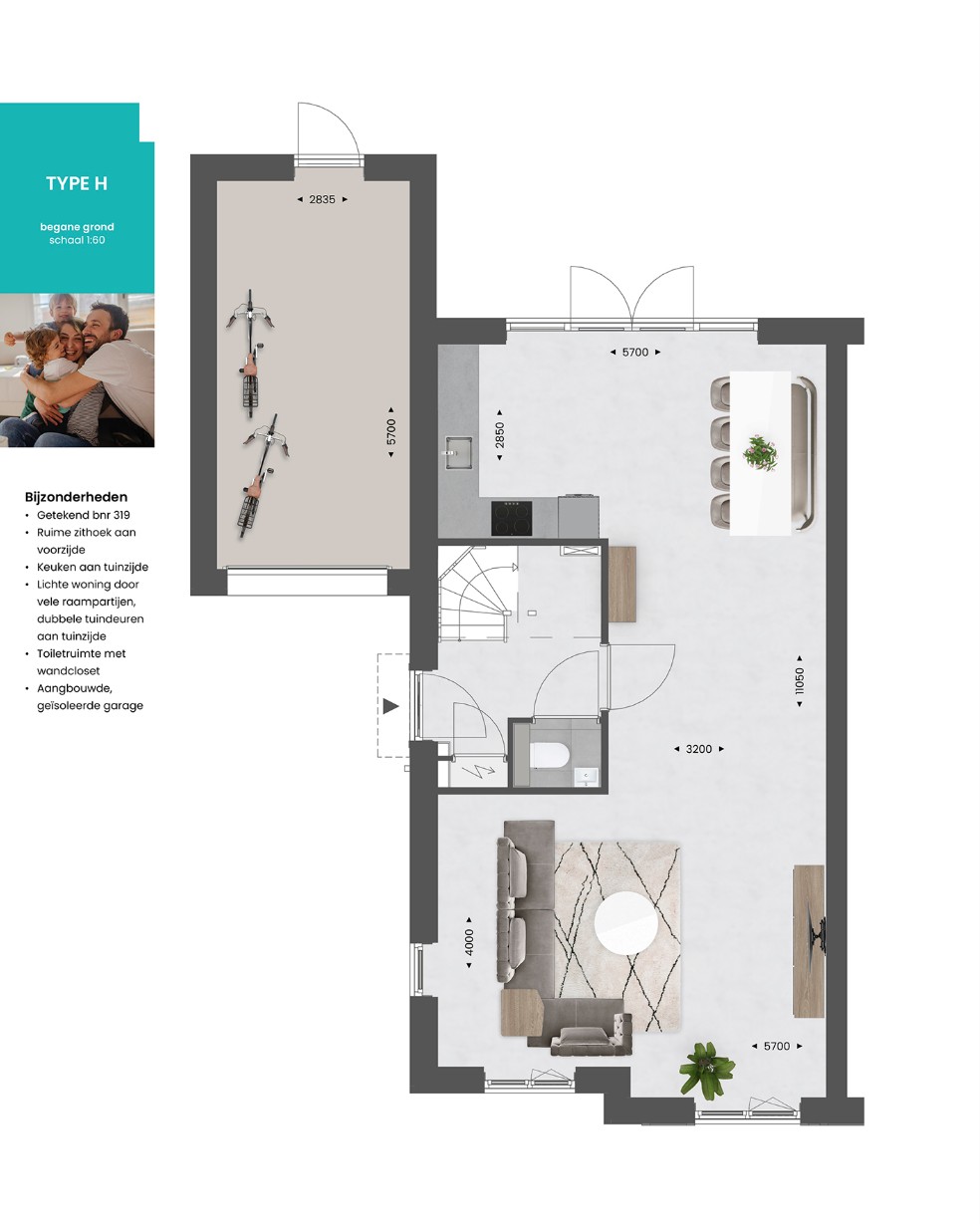 Er zijn volop mogelijkheden om deze woning naar jouw wensen aan te passen. Op de begane grond kun je kiezen voor een uitbouw van 1,20 of 2,40 meter, waarmee je direct meer leefruimte creëert. Wil je liever de keuken aan de voorzijde? Ook dat is mogelijk. Daarnaast kun je de garage verlengen en/of opsplitsen in een berging en een extra ruimte die je bij de woning betrekt – ideaal voor bijvoorbeeld een werkkamer, speelruimte of hobbyruimte.
