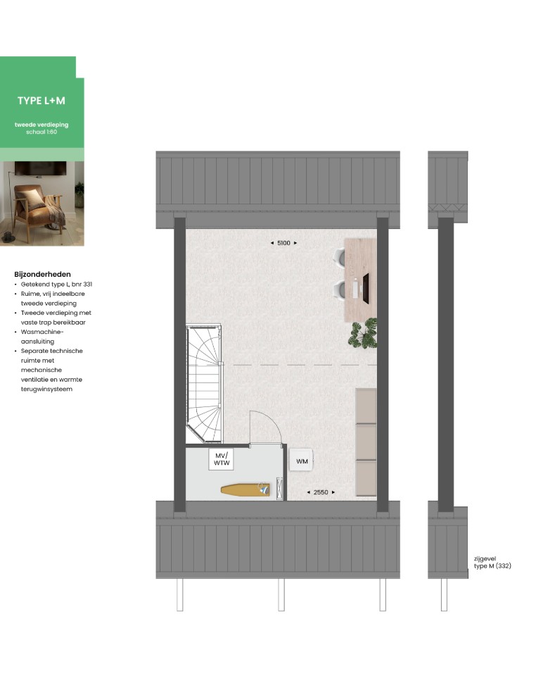 Geniet ’s ochtends aan de voorzijde onder de houten pergola op het terras van een kop koffie in de ochtendzon, terwijl de kinderen veilig spelen in de autovrije straat. Deze woning heeft alles in huis om fijn te wonen. Een doordachte indeling, veel leefruimte, 3 volwaardige slaapkamers én een ruime tweede verdieping. Daarnaast is de woning zeer energiezuinig. Dat is goed voor het milieu én jouw portemonnee. Meer ruimte nodig voor je gezin, hobby of werk? Ontdek dan de verschillende uitbreidings- en indelingsmogelijkheden om van dit huis jouw thuis te maken.