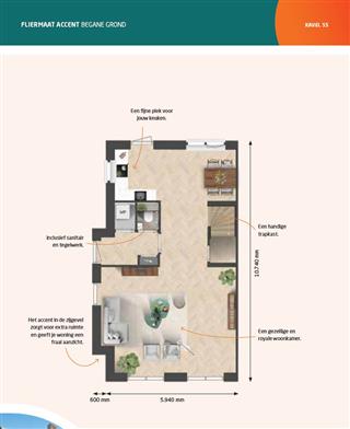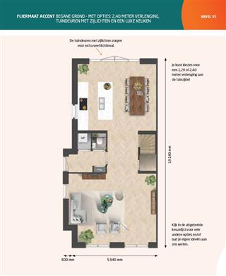 Woningmodel Fliermaat is een stijlvolle en karakteristieke woning met fraaie accenten in het 51 metselwerk die de gevel extra charme geven. In de achtertuin staat een praktische houten