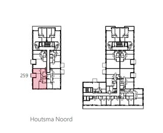 Dit bijzondere 3-kamerappartement van circa 86 m2 ligt op de 6e verdieping van Houtsma Noord. Vanwege de hoekligging geniet je van een prachtige lichtinval in de living en open keuken. Het balkon, die je met een schuifpui bereikt vanuit de keuken, zou zomaar je favoriete plek kunnen worden voor je eerste kop koffie ’s ochtends of een uitgebreid ontbijt in het weekend. De master­bedroom is een ruime kamer. De lange wand is zeer geschikt voor een fraaie maatwerk kledingkast. De tweede slaapkamer is een ideale kinderkamer, strijkkamer of study als je regelmatig thuiswerkt. Aan de hal grenzen het apart toilet, de badkamer met douche en brede wastafel en de berging. In de berging kun je de wasmachine en wasdroger naast elkaar plaatsen en staan de technische apparaten.