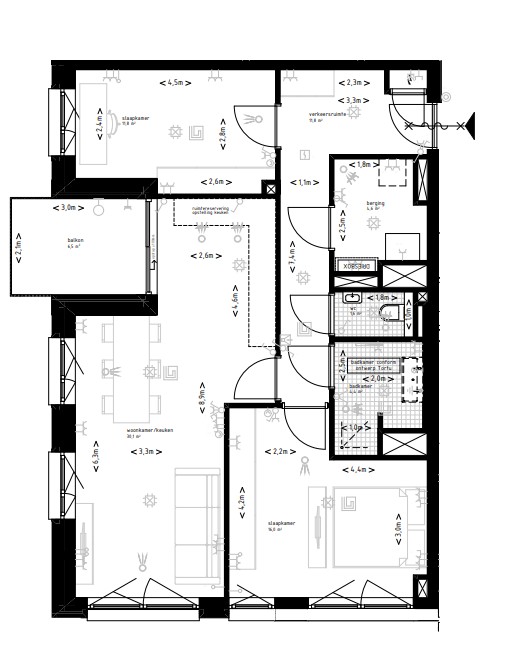 De appartementen worden zonder keuken opgeleverd, zodat je deze zelf kunt samenstellen. Via LEICHT Amsterdam kun je kiezen voor een hoogwaardige keuken met moderne apparatuur en een afwerking die past bij jouw woonstijl. De badkamers en toiletten zijn ingericht door Tortu, met kwalitatief sanitair en tegelwerk in rustige, natuurlijke tinten.