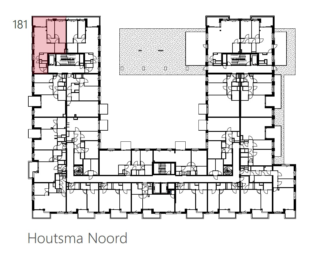Tussen de twee woonblokken van Houtsma liggen groene binnentuinen die bewoners een moment van rust bieden midden in de stad. Hier is ruimte om buiten te zitten, elkaar te ontmoeten of gewoon even van het groen te genieten. De binnentuinen vormen een beschutte plek waar bewoners zich thuis voelen en kinderen veilig kunnen spelen.