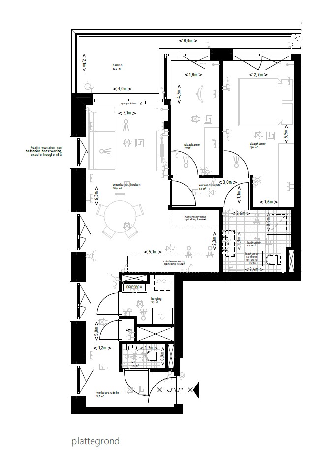 De appartementen worden zonder keuken opgeleverd, zodat je deze zelf kunt samenstellen. Via LEICHT Amsterdam kun je kiezen voor een hoogwaardige keuken met moderne apparatuur en een afwerking die past bij jouw woonstijl. De badkamers en toiletten zijn ingericht door Tortu, met kwalitatief sanitair en tegelwerk in rustige, natuurlijke tinten.