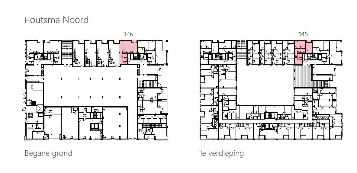 Tussen de twee woonblokken van Houtsma liggen groene binnentuinen die bewoners een moment van rust bieden midden in de stad. Hier is ruimte om buiten te zitten, elkaar te ontmoeten of gewoon even van het groen te genieten. De binnentuinen vormen een beschutte plek waar bewoners zich thuis voelen en kinderen veilig kunnen spelen.