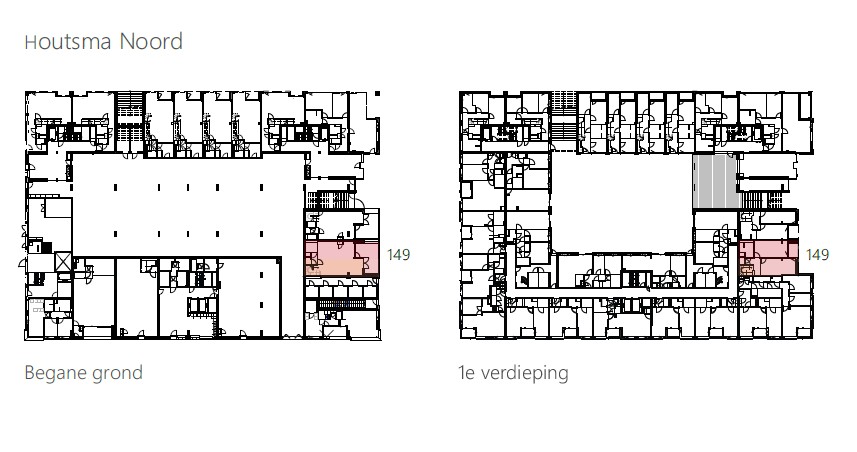 Tussen de twee woonblokken van Houtsma liggen groene binnentuinen die bewoners een moment van rust bieden midden in de stad. Hier is ruimte om buiten te zitten, elkaar te ontmoeten of gewoon even van het groen te genieten. De binnentuinen vormen een beschutte plek waar bewoners zich thuis voelen en kinderen veilig kunnen spelen.