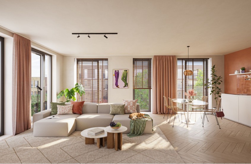 • Dankzij een warmte- en koudeopslagsysteem (WKO) verwarm en koel je je appartement op een slimme manier, terwijl extra geïsoleerde wanden, daken en triple glas in combinatie met geïsoleerde aluminium kozijnen zorgen voor een constante, aangename temperatuur.