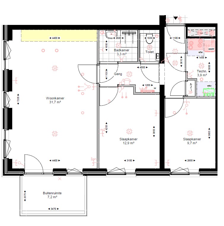 • Ruime woonkamer van ca. 32 m² met veel lichtinval en toegang tot het balkon