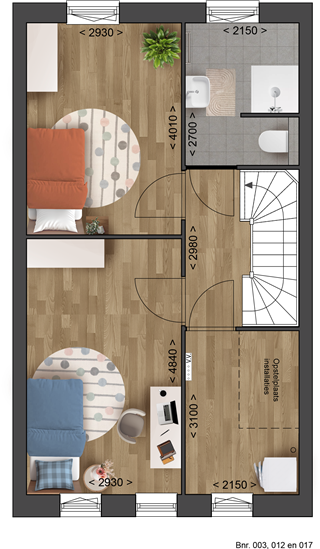 De zolderverdieping is nog eens voorzien van 2 slaapkamers en een berging/installatieruimte. Tevens bevindt zich hier een extra badkamer.
