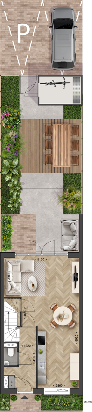 - Diepe achtertuin van ca 12 meter;