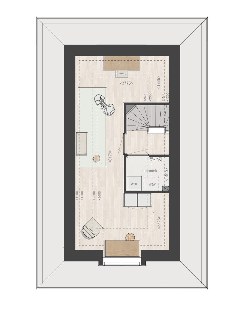 Op de eerste verdieping heeft de woning drie slaapkamers, een ruime badkamer en apart toilet. Op de twee verdieping een vrij indeelbare zolder met techniek ruimte en aansluiting voor wasmachine en droger.