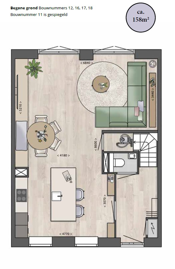 - Achteruitbouw van 1,2 meter of 1,8 meter mogelijk (m.u.v. bouwnummer 12)