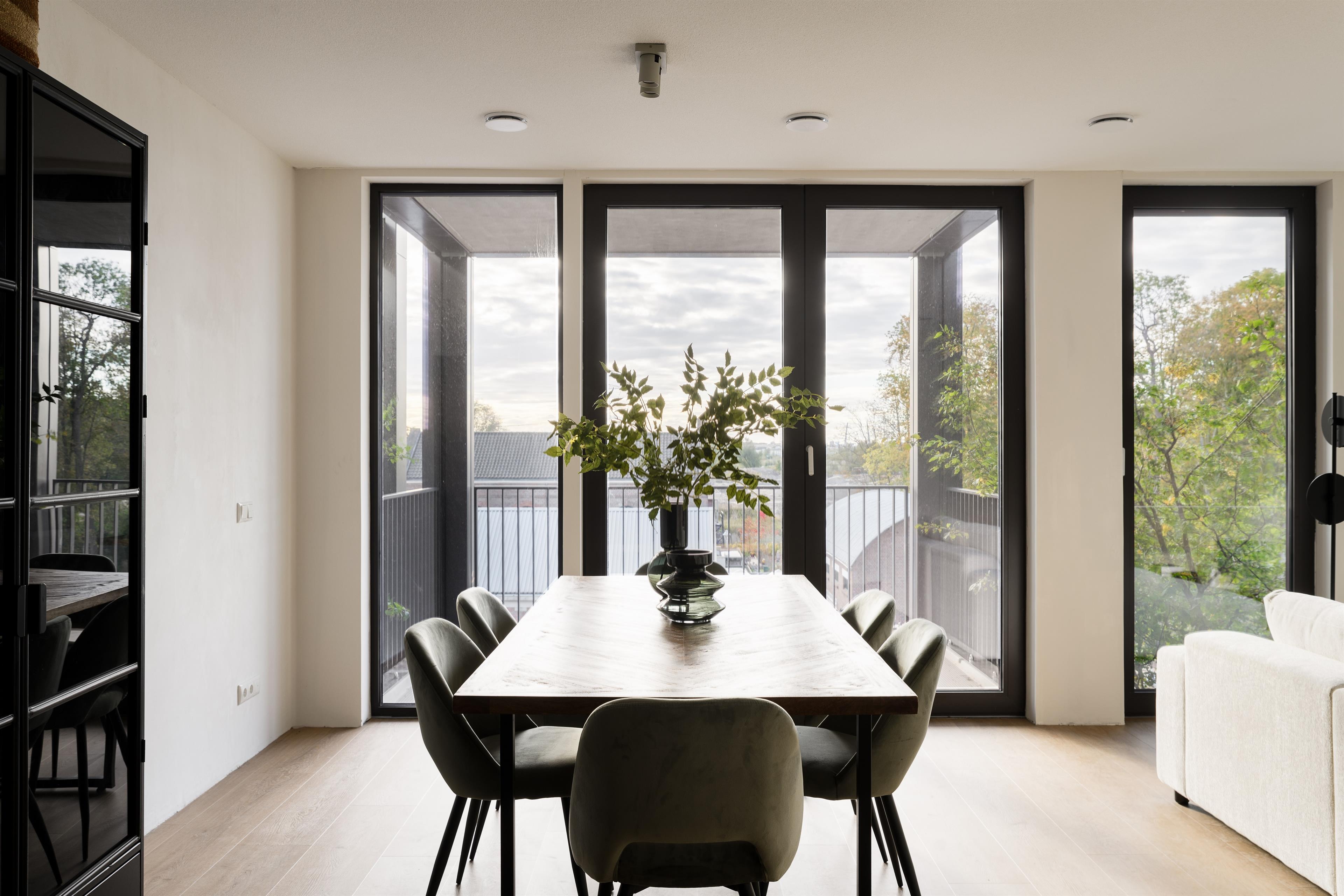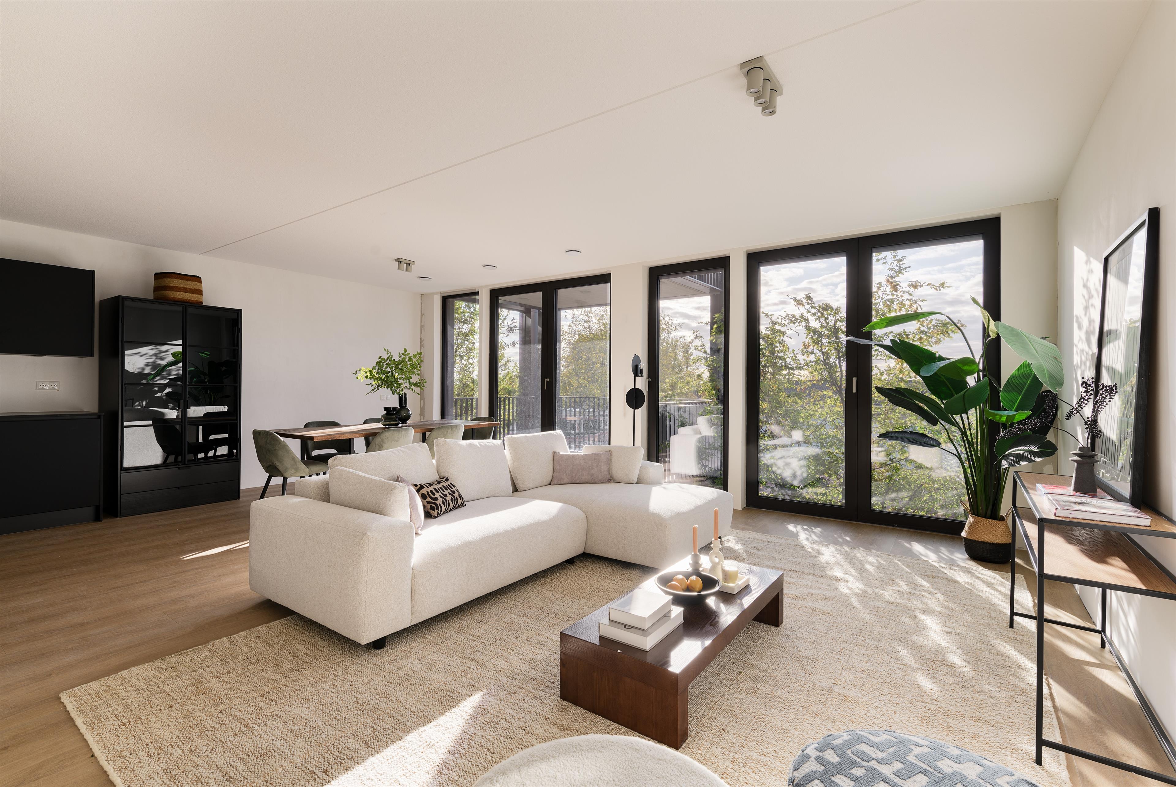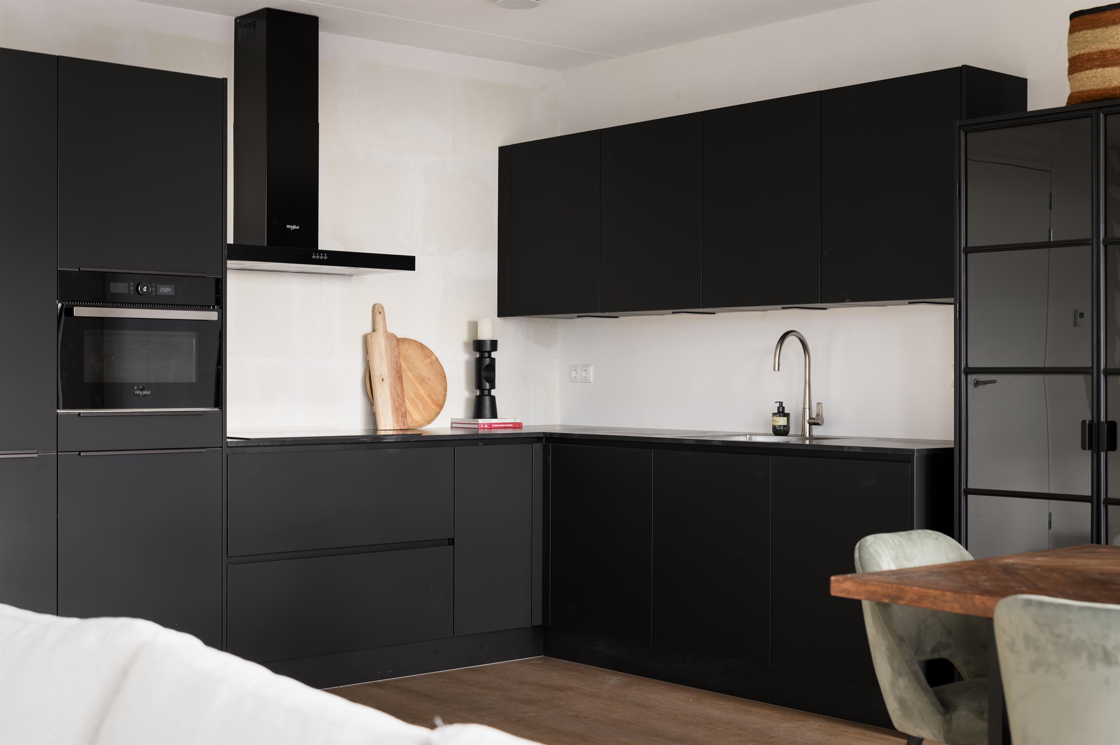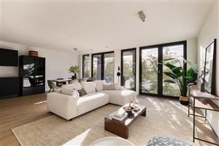 De woonkamer is ruim en licht dankzij de grote raampartijen, wat zorgt voor een open en uitnodigende sfeer. De open keuken, grenzend aan de woonkamer, is voorzien van hoogwaardige inbouwapparatuur en biedt volop ruimte om heerlijk te koken en te genieten van gezellige etentjes.