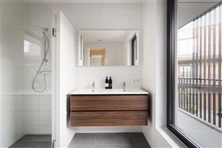 - Een stijlvol afgewerkte badkamer, voorzien van een inloopdouche en modern sanitair.
