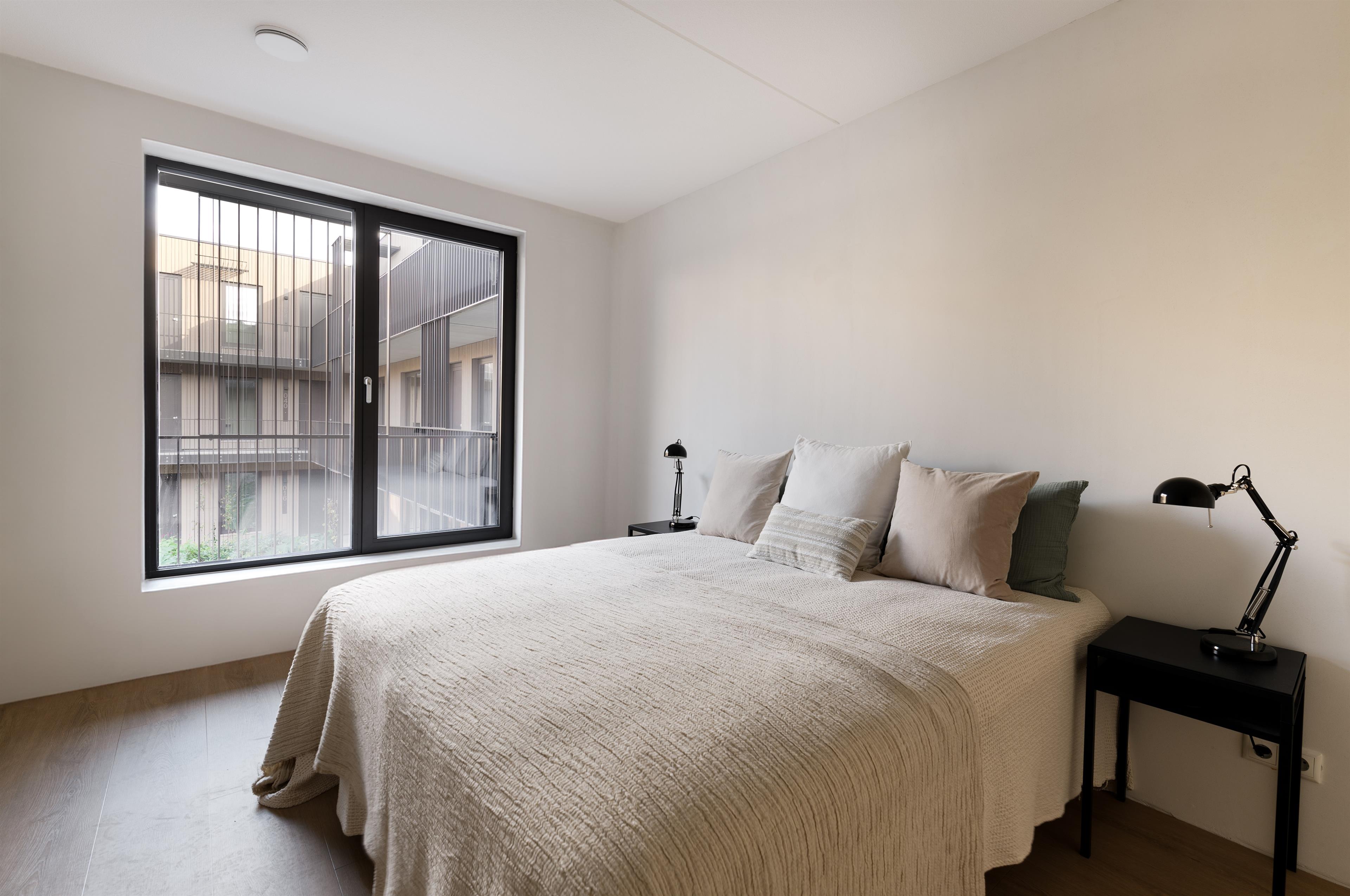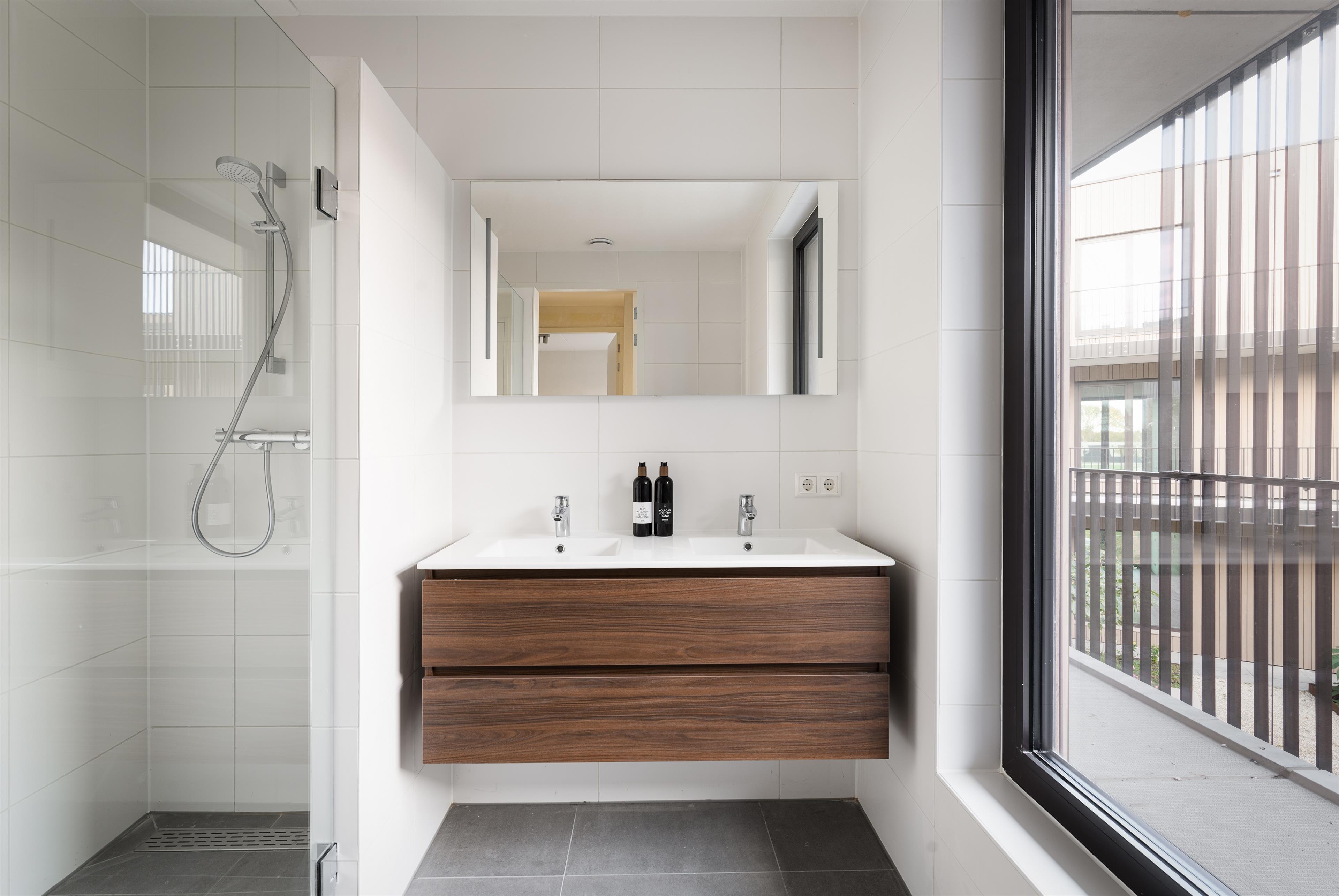 De slaapkamer in elk appartement is ruim genoeg voor een comfortabel tweepersoonsbed en een grote kledingkast. Het ontwerp van de slaapkamer zorgt voor een rustige en ontspannen plek om je terug te trekken na een lange dag. De badkamer is stijlvol afgewerkt en voorzien van een moderne inloopdouche, een wastafel met meubel en strak sanitair.