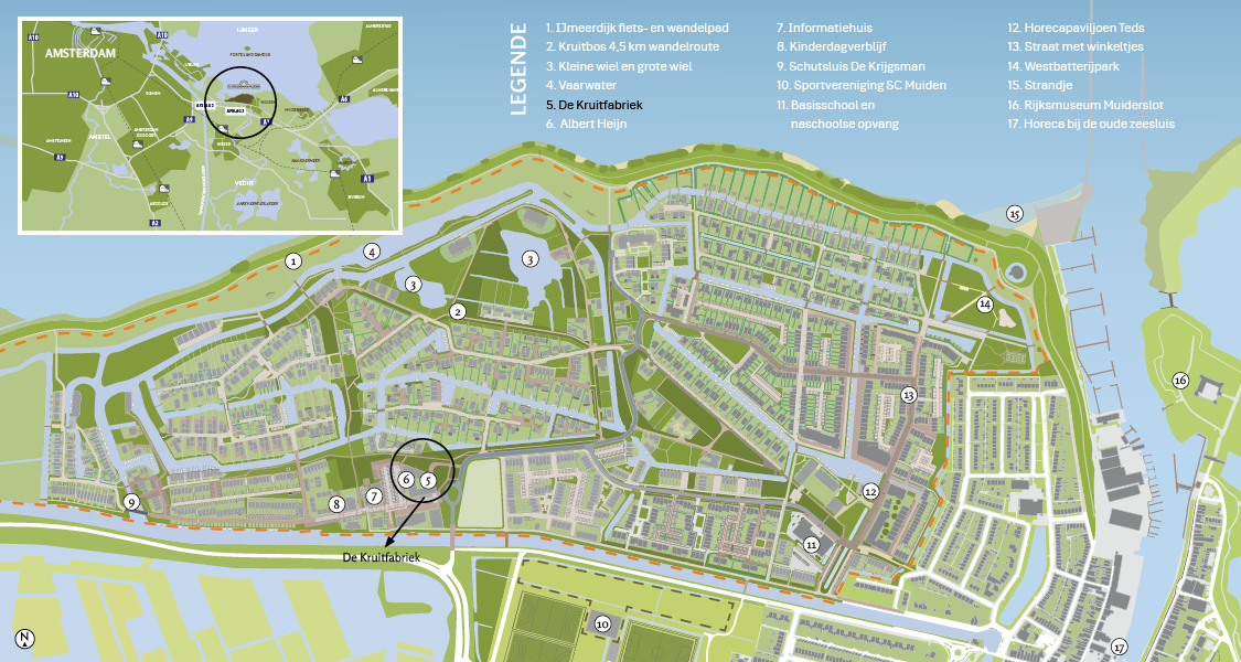 Aan de rand van de oude Vesting van Muiden is een nieuw woongebied gerealiseerd; De Krijgsman Muiden. Gelegen op loopafstand van diverse winkelvoorzieningen, cafés, restaurants, de jachthavens en de sluis in de oude charmante kern van Muiden. Ook binnen De Krijgsman zijn inmiddels volop voorzieningen zoals een Albert Heijn, een basisschool, diverse winkeltjes en een restaurant en vele speelvoorzieningen en wandelroutes. Ook aan openbaar vervoer geen tekort; er rijden af en aan diverse bussen op verschillende routes en naar het dichtstbijzijnde treinstation is het 10 minuten fietsen. Kortom, een uitstekend gelegen woonwijk in de natuur, tussen het IJmeer en de Vecht, en historische gebouwen van de Stelling van Amsterdam en de kruitfabriek. Op een steenworp afstand van Amsterdam.