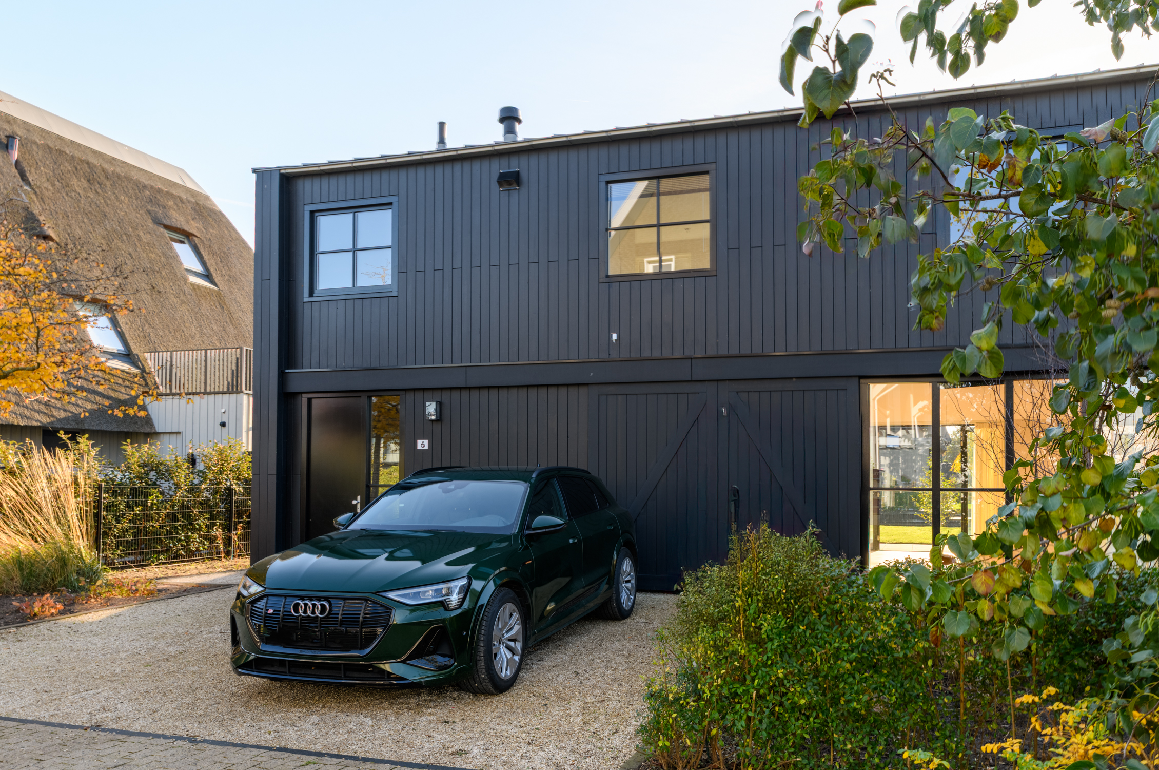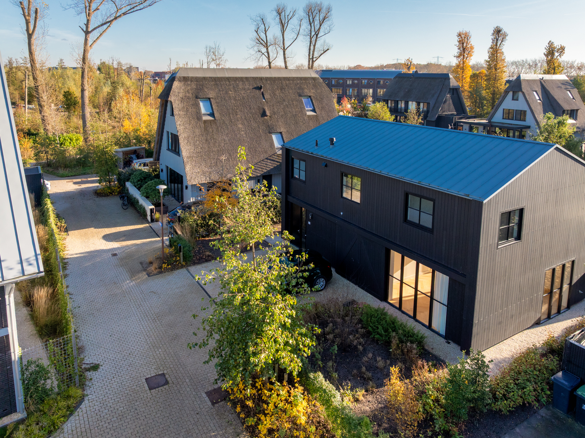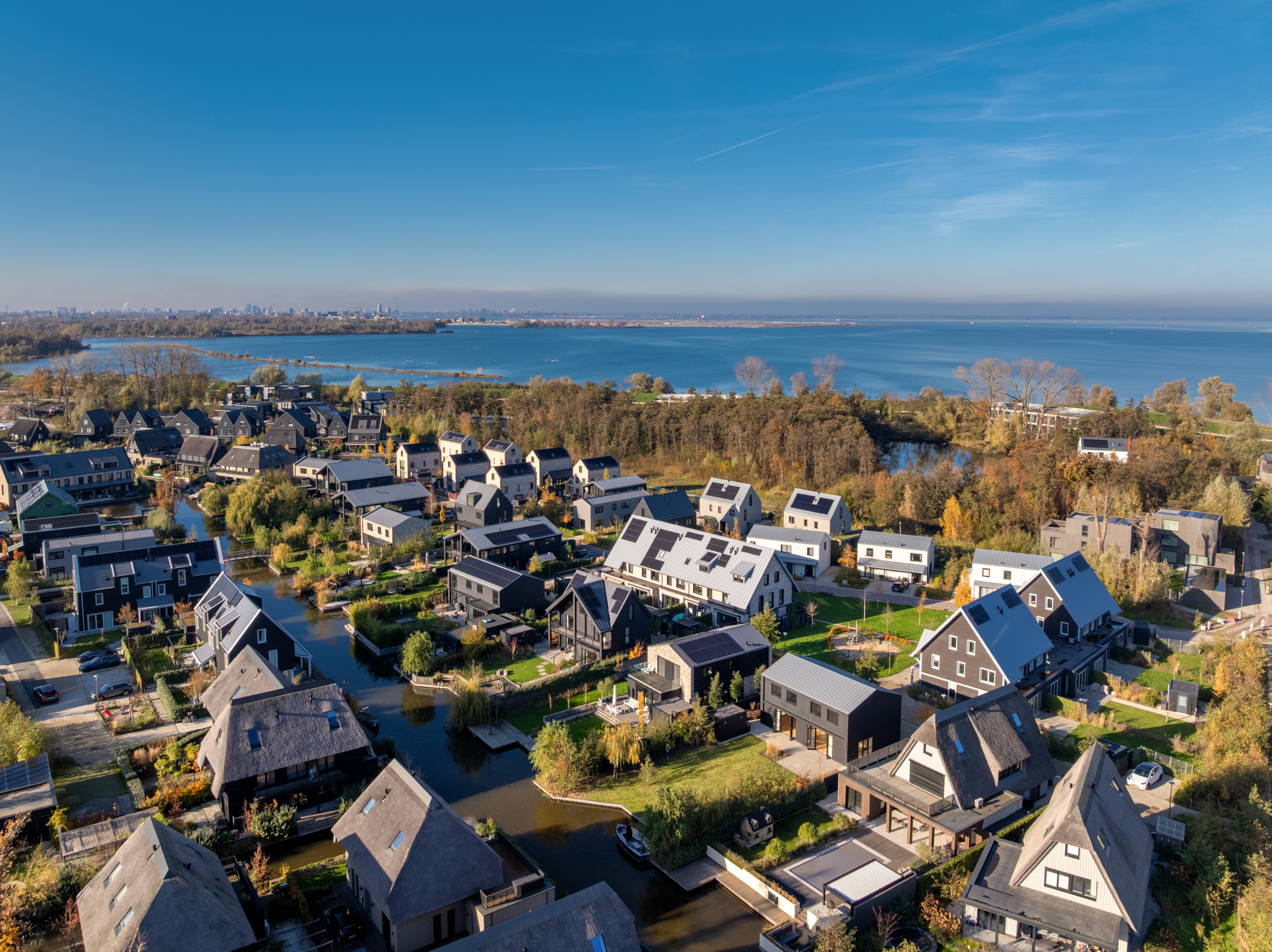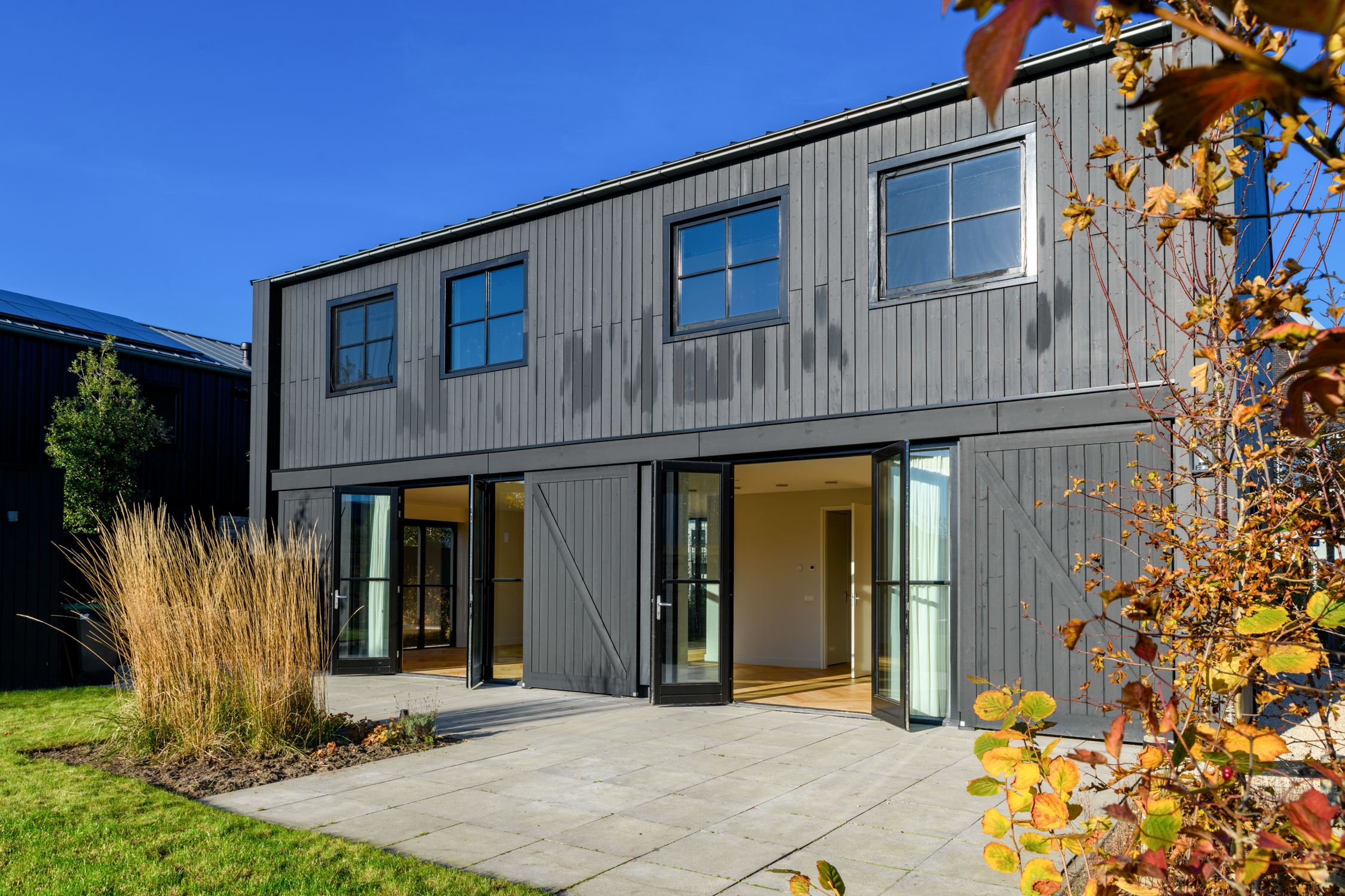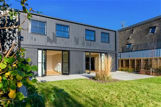 Tuingerichte woonkamer naar boven Tuingerichte woonkamer Met prachtig lichtinval Heerlijk ruim en licht De woonkamer is een heerlijke lichte ruimte dankzij de grote openslaande deuren aan de achterzijde en de royale raampartijen aan de zijkant. De visgraatvloer met vloerverwarming voelt comfortabel en stijlvol tegelijk. Elke ruimte heeft een eigen thermostaat, waardoor je altijd de perfecte temperatuur creëert. Vanuit de woonkamer kijk je prachtig uit over de zij-, voor- en achtertuin én richting de watergang. De directe toegang tot de tuin maakt dit een fijne plek voor relaxte avonden, etentjes en het dagelijkse gezinsleven. Hier komen licht, ruimte en sfeer harmonieus samen.