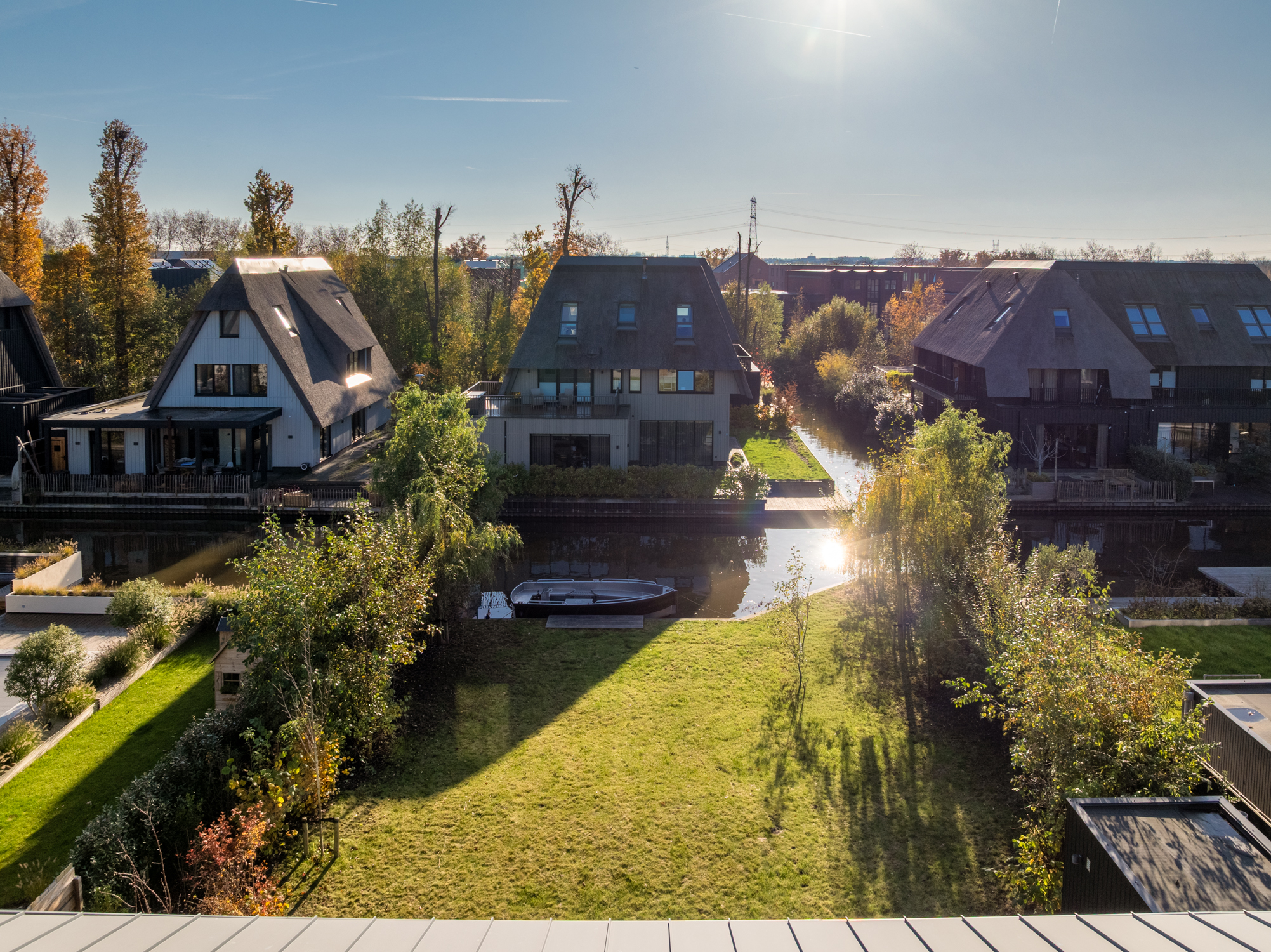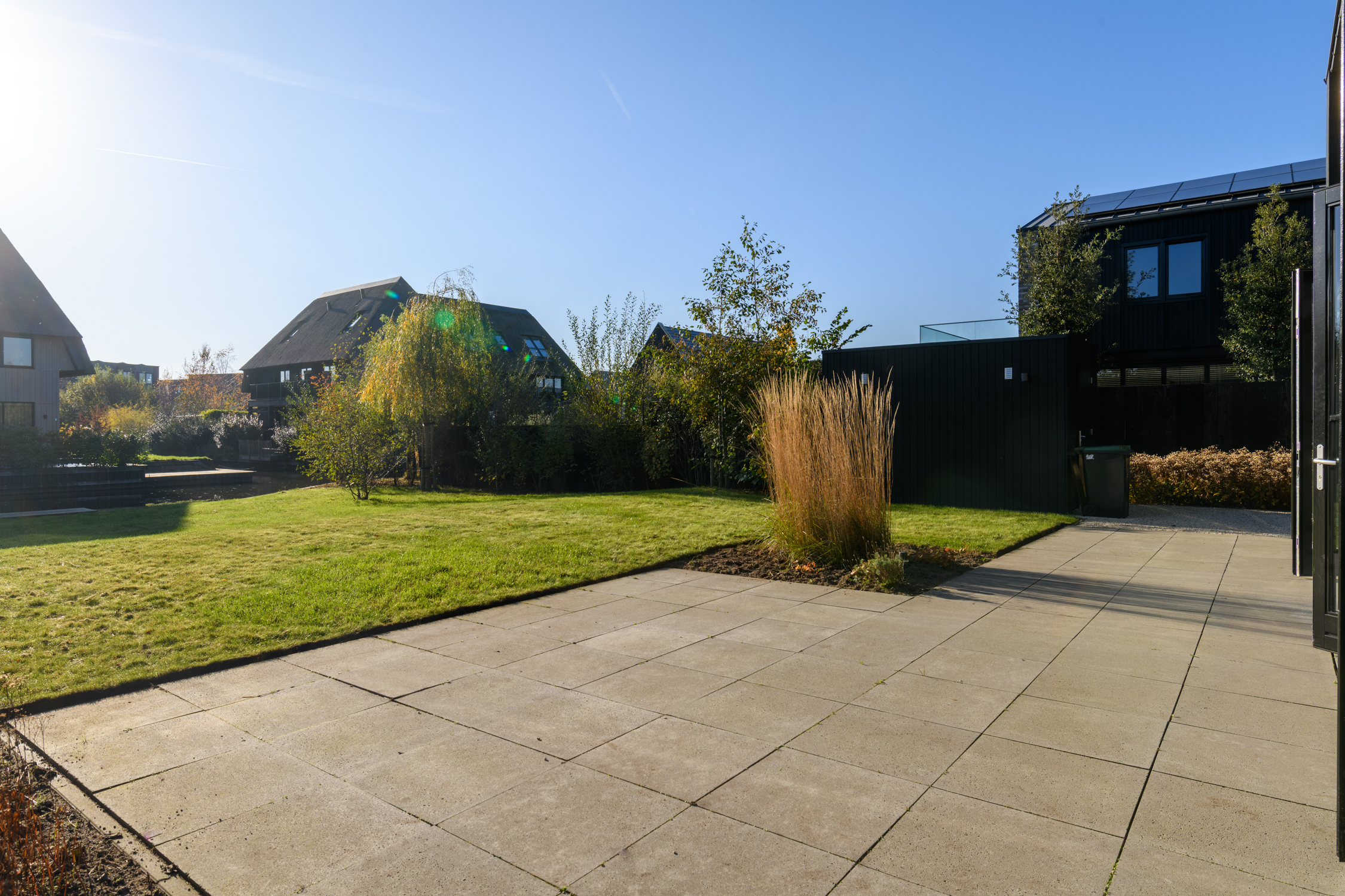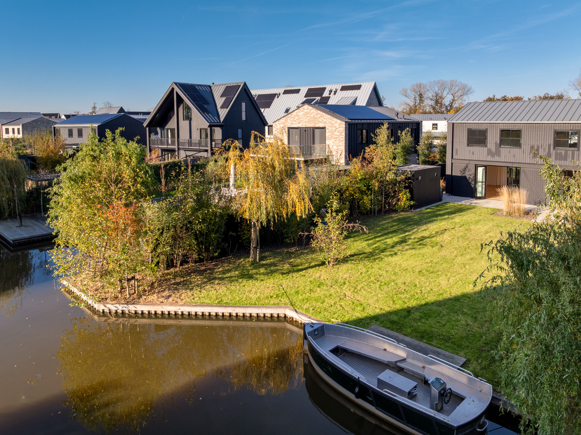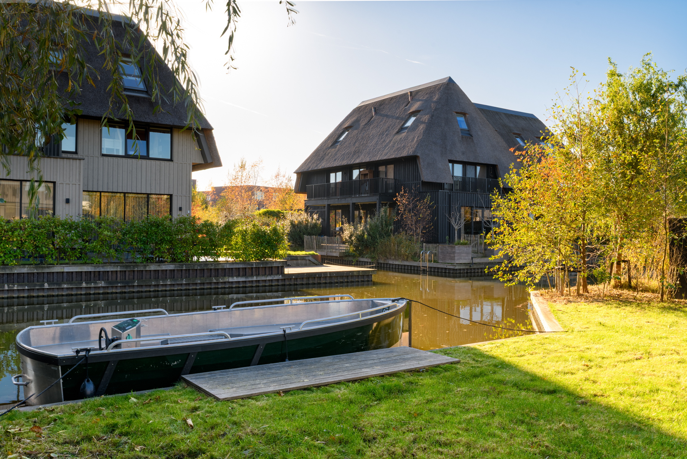 Prachtige tuin rondom naar boven Prachtige tuin rondom Met ligplaats voor een sloep Tuin met ligplaats De achtertuin is heerlijk diep en groen, direct bereikbaar vanuit de woonkamer en keuken. Hier geniet je de hele dag van rust, privacy en het uitzicht op de watergang. Aan het einde van de tuin ligt de aanlegplaats voor een sloep – ideaal voor recreatie of gewoon als sfeervolle toevoeging. De berging met elektra is praktisch en ruim. Dankzij de tuin rondom het huis heb je altijd een zonnig plekje. Dit is buitenleven op z’n mooist.