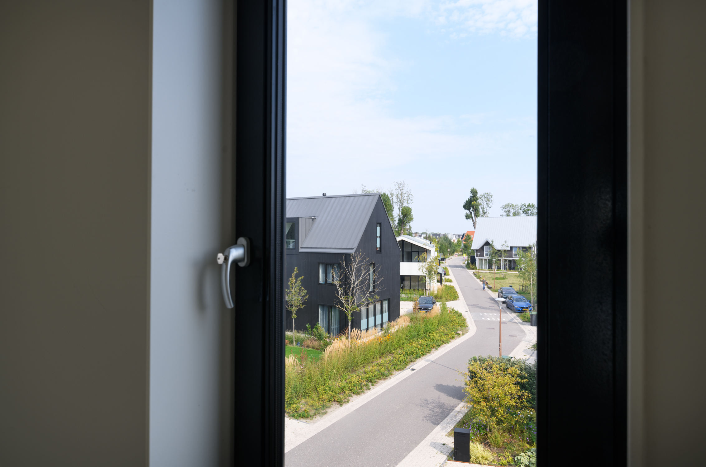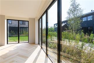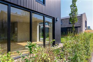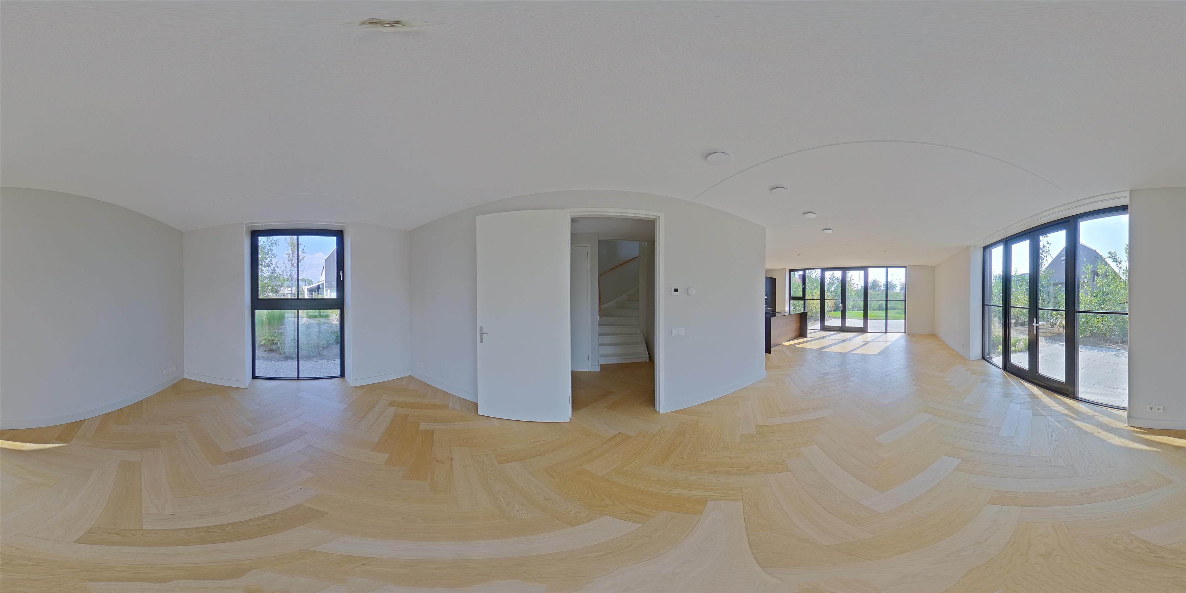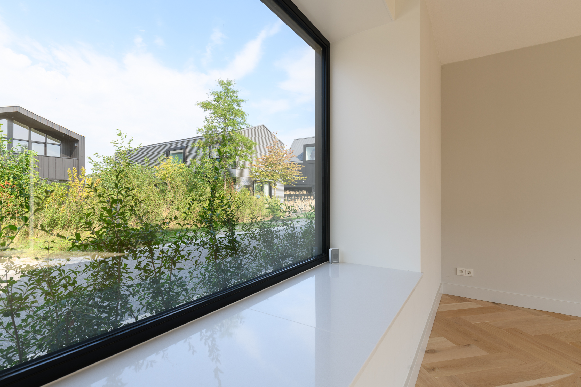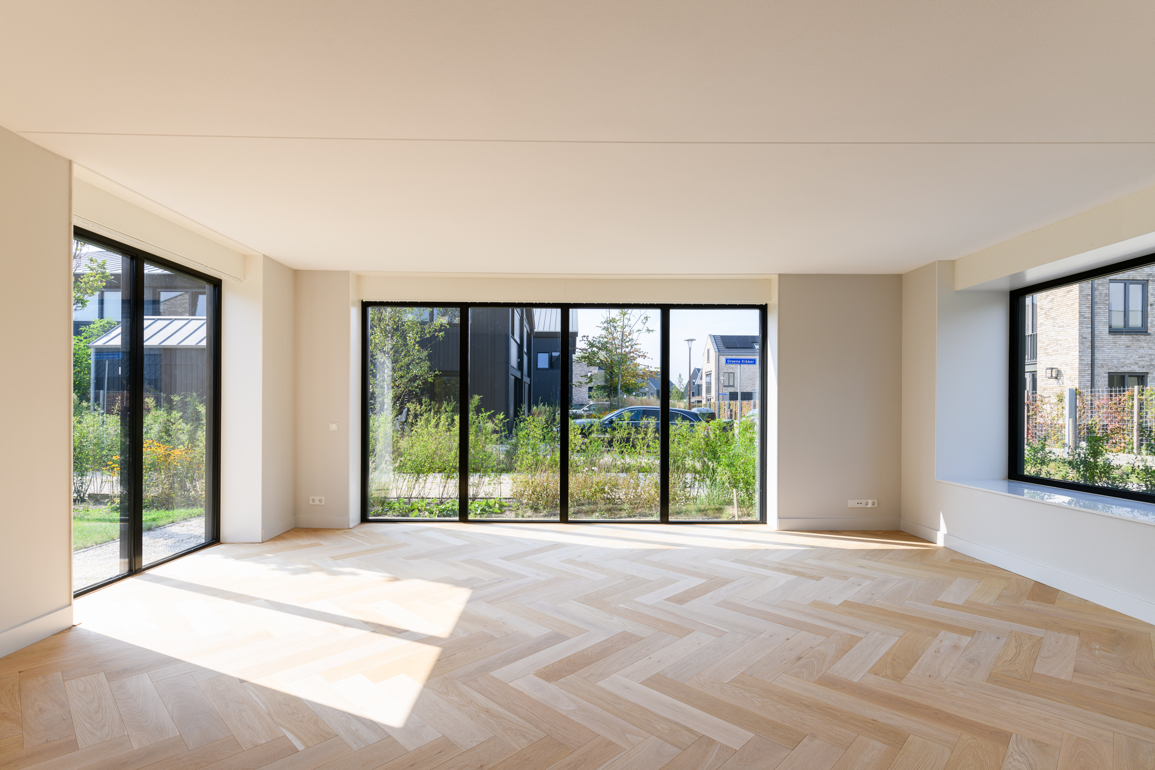 Tuingerichte woonkamer naar boven Tuingerichte woonkamer Mooie grote ramen Heerlijk ruim en licht De woonkamer van deze stijlvolle vrijstaande villa is een lichte, royale leefruimte waar comfort en elegantie samenkomen. Dankzij de hoge raampartijen tot aan de vloer geniet je hier de hele dag van natuurlijk licht. Openslaande deuren bieden direct toegang tot de zonnige tuin, wat zorgt voor een fijne verbinding tussen binnen en buiten. De prachtige houten visgraat vloer met vloerverwarming draagt bij aan het warme en luxe gevoel in huis. Als vrijstaande woning heb je bovendien aan alle zijden lichtinval, wat een ruimtelijk en open gevoel creëert. Met een eigen thermostaat per ruimte is het comfort volledig naar wens in te stellen. Hier voel je je elke dag thuis.