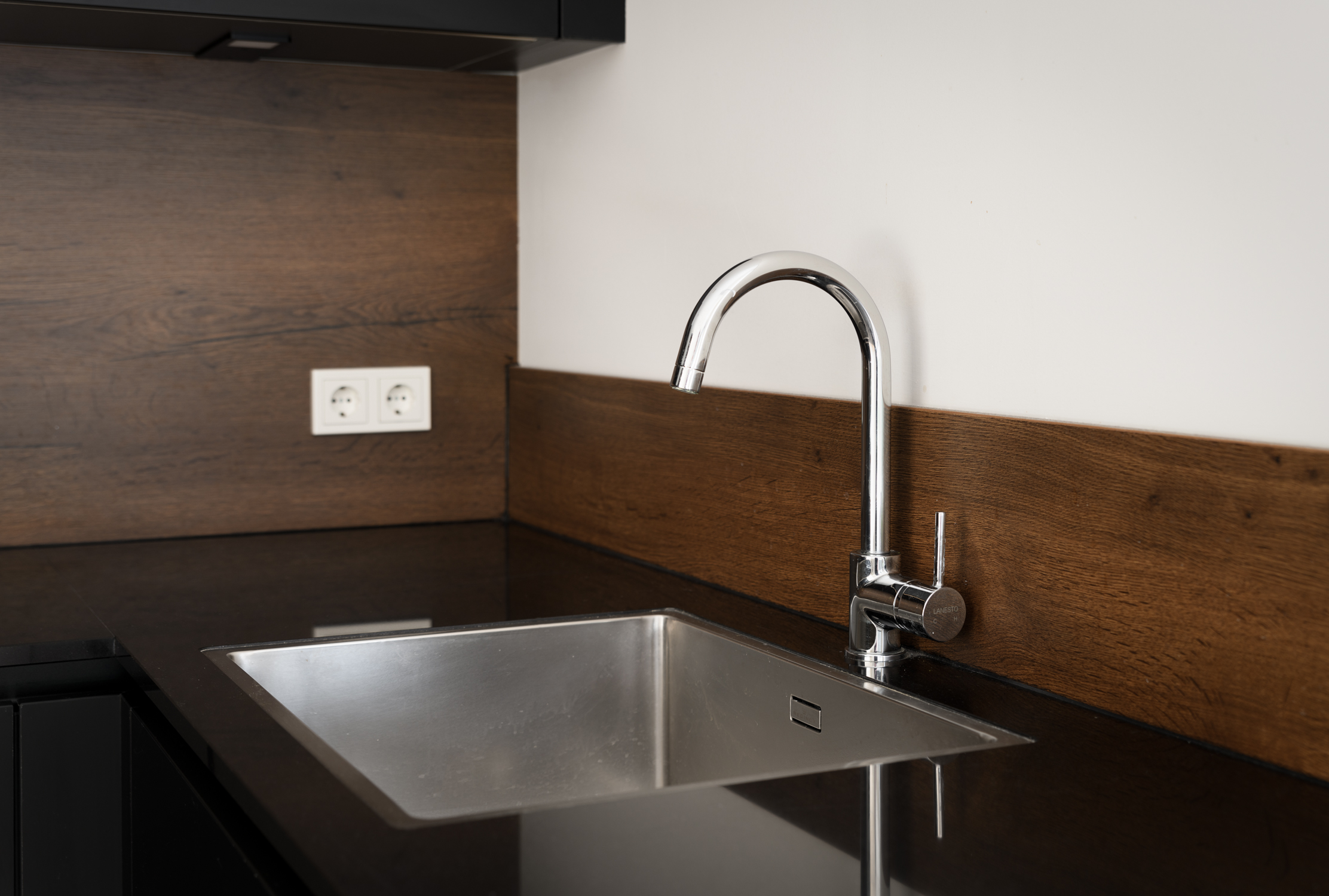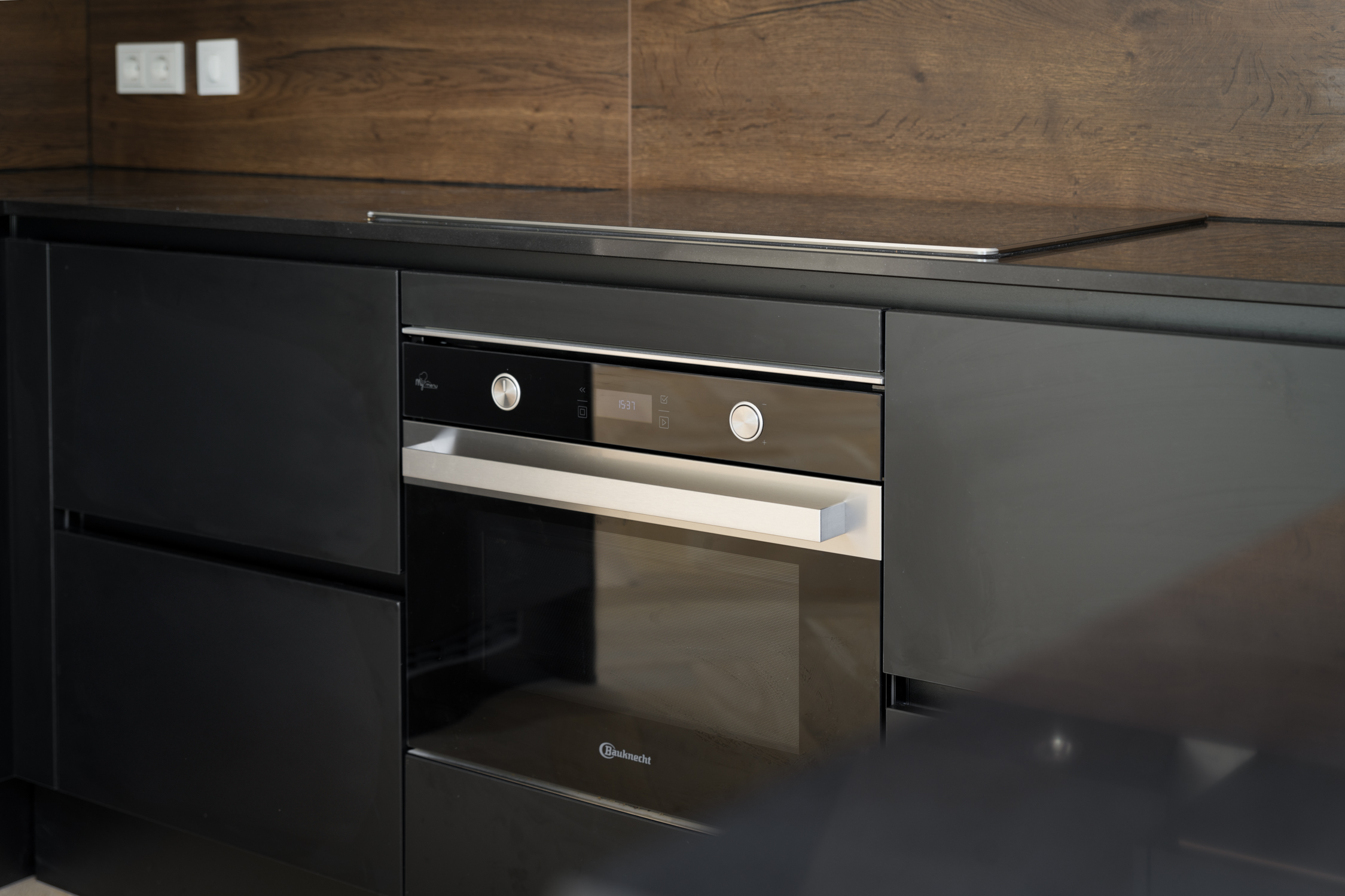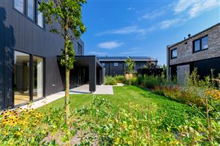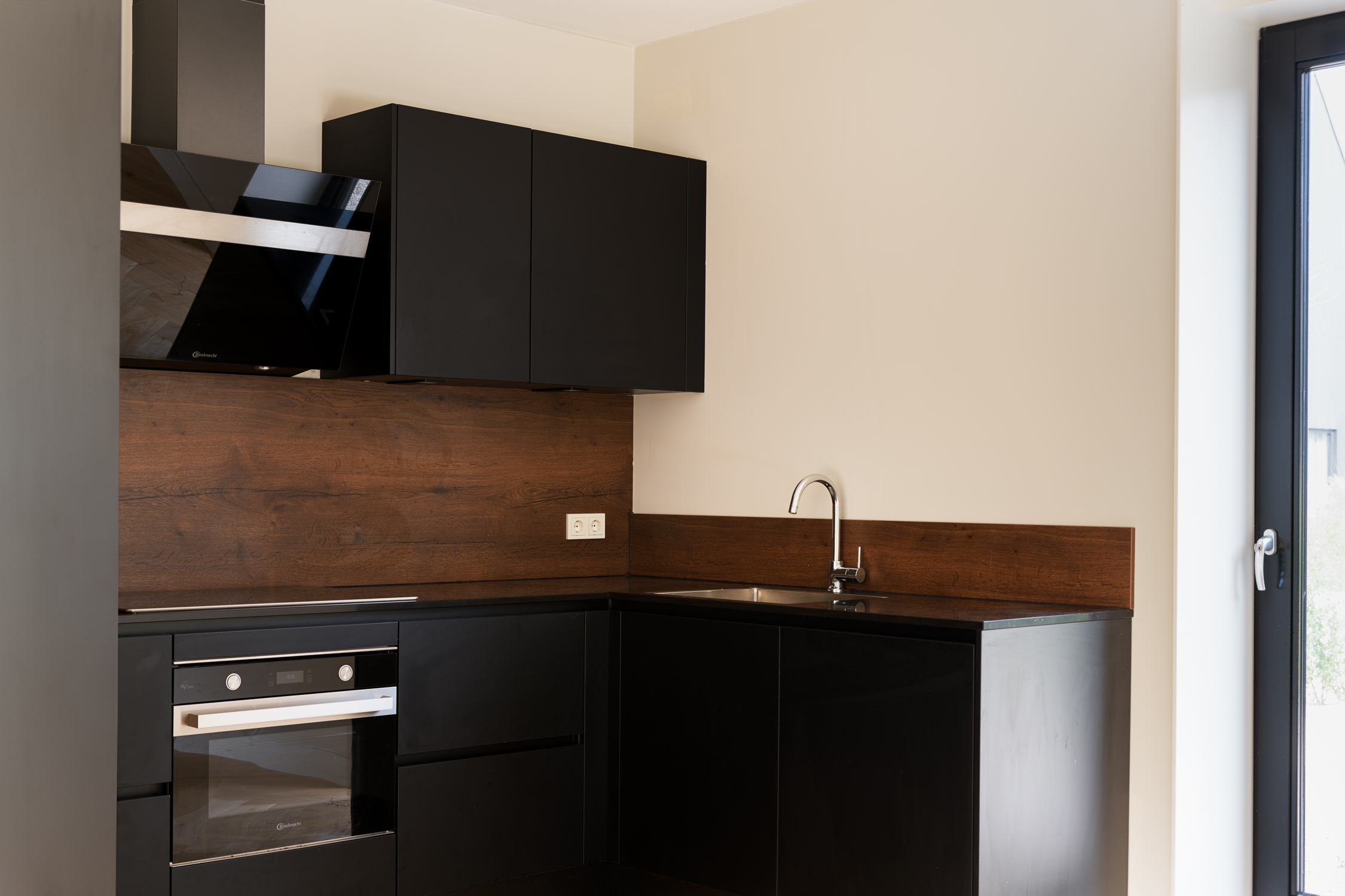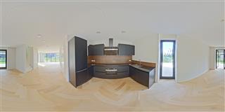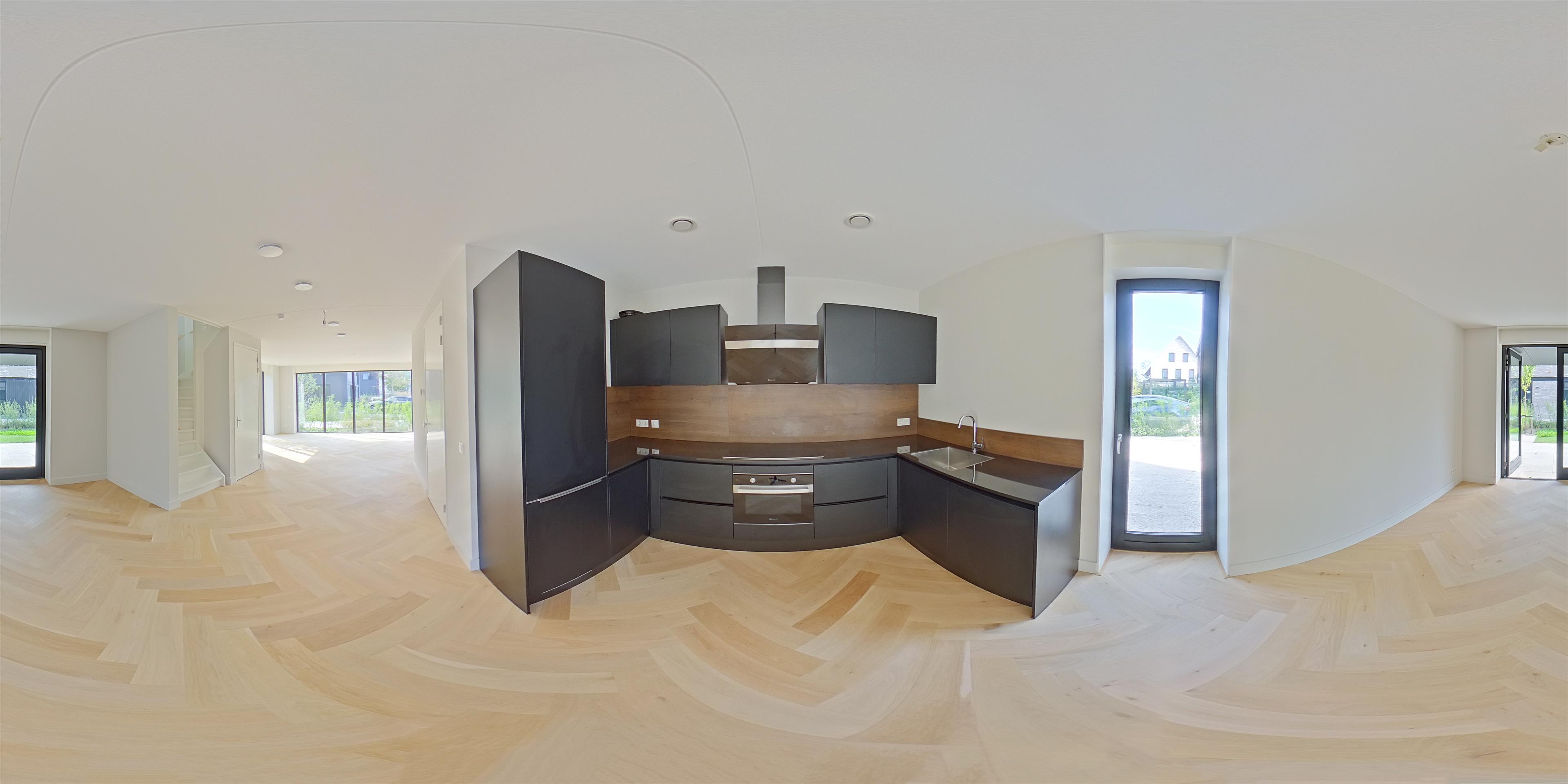 Moderne keuken naar boven Moderne keuken Alle apparatuur ingebouwd Moderne uitstraling Aan de voorzijde van de woning bevindt zich de royale en moderne woonkeuken, een heerlijke plek om samen te komen. De keuken is uitgevoerd met luxe inbouwapparatuur zoals een inductiekookplaat, afzuigkap, combi-oven, vaatwasser en koel-/vriescombinatie. Het kookgedeelte is slim ingedeeld, met volop werkruimte en toegang en zicht op de voortuin. Dankzij zowel een enkele deur als openslaande deuren naar de tuin, verbind je het buitenleven moeiteloos met de keuken. Deze leefkeuken is ideaal voor lange avonden tafelen met vrienden, of juist ontspannen ontbijten in de ochtend.