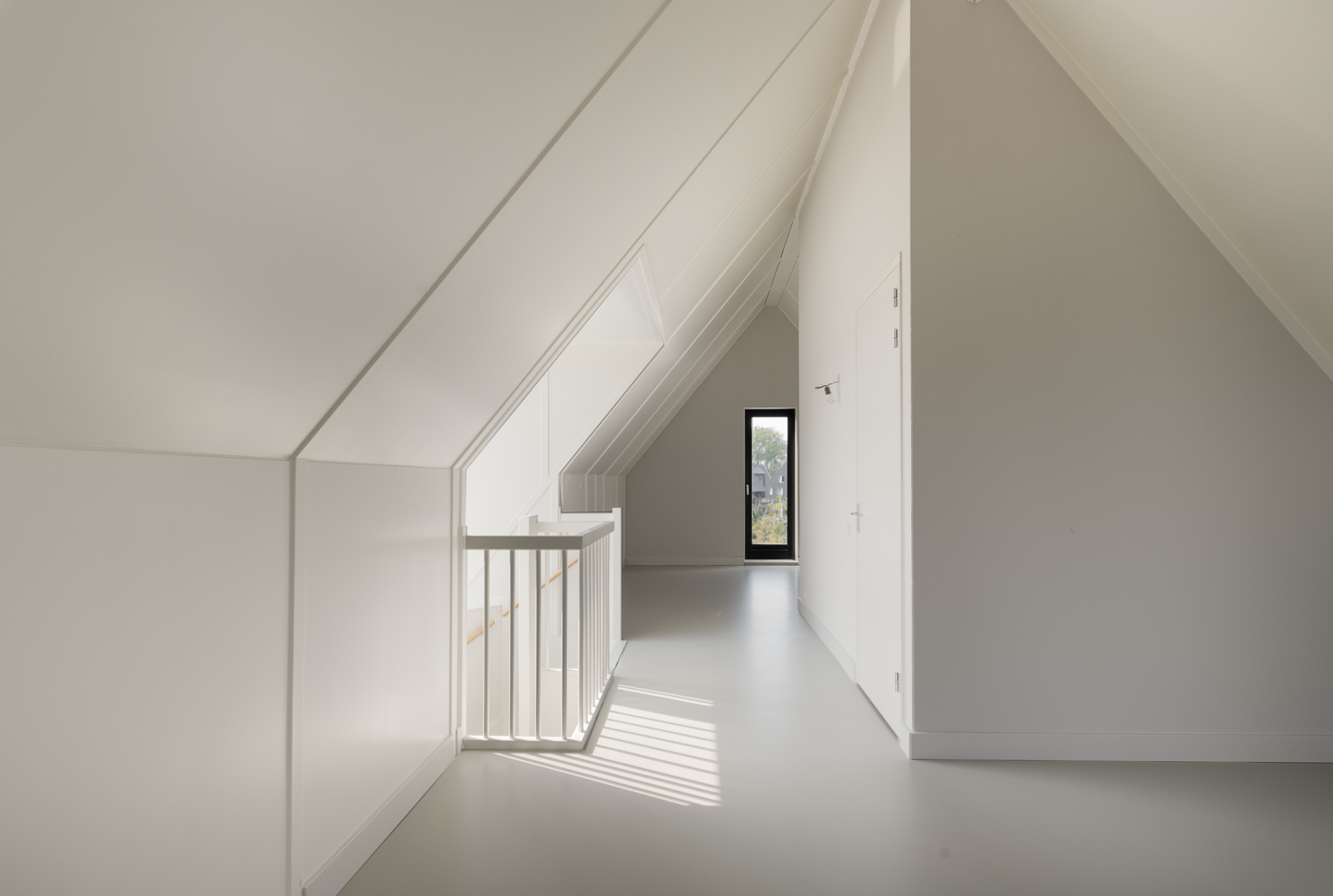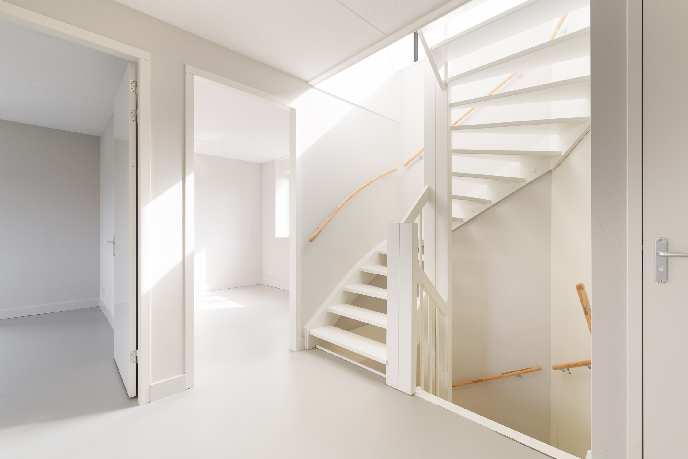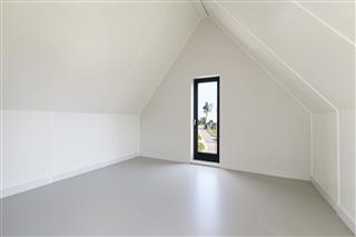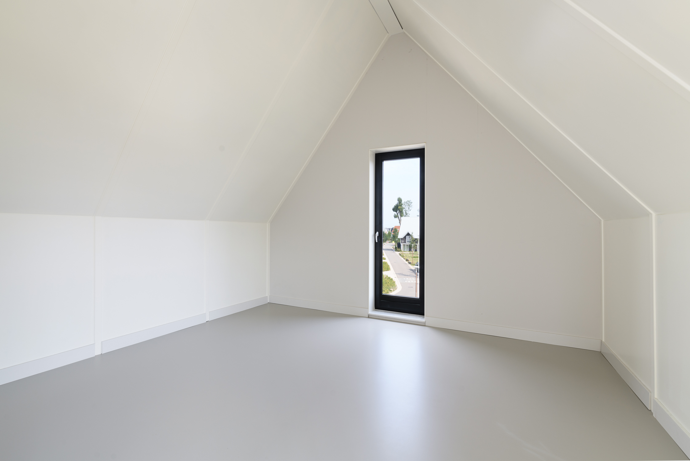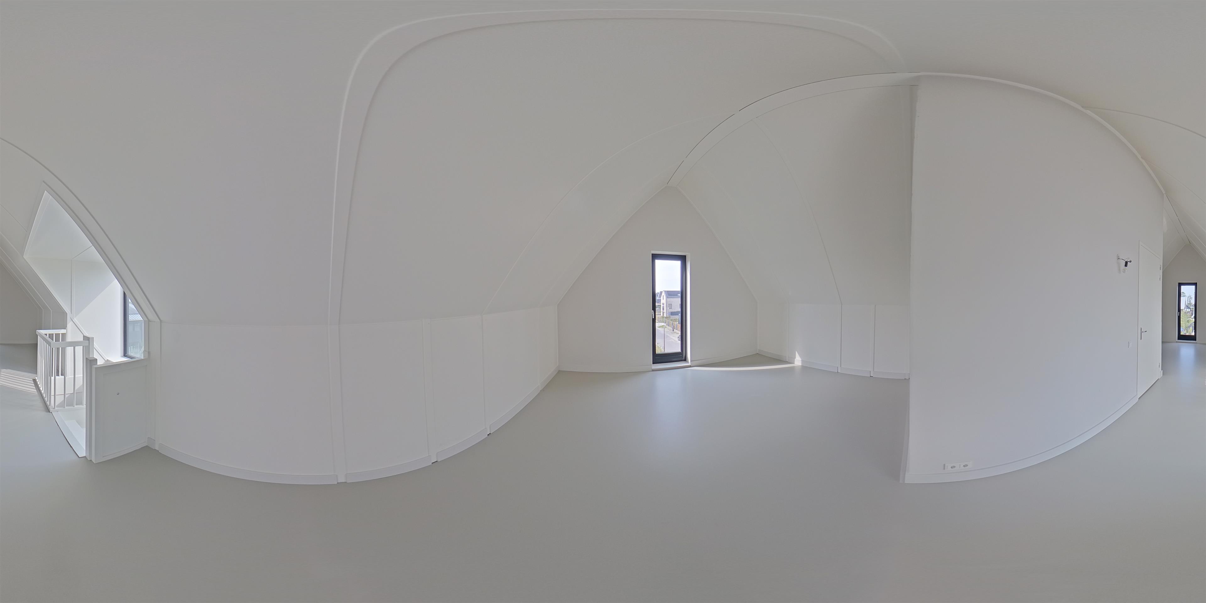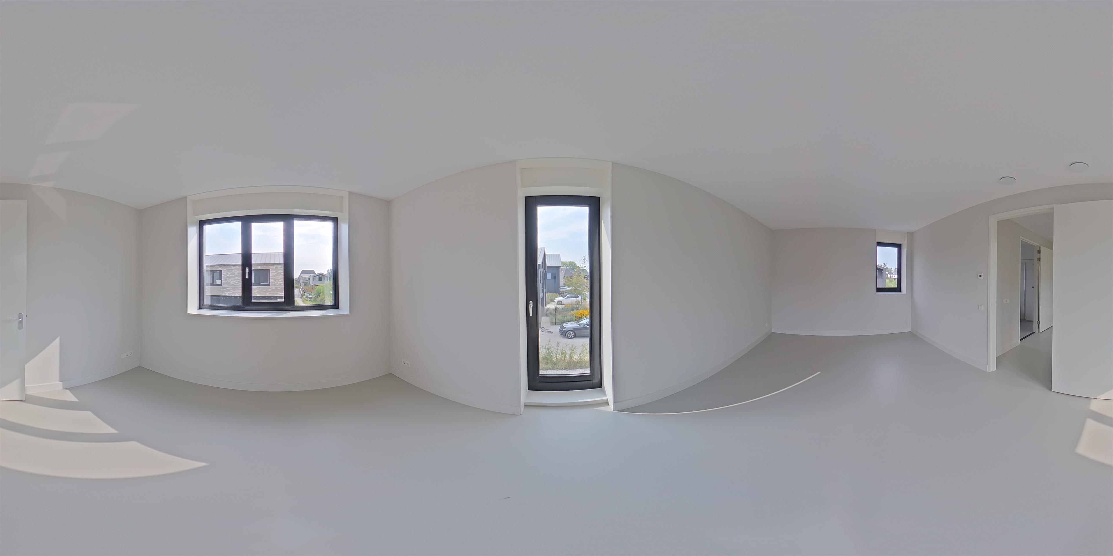 Riante slaapkamers naar boven Riante slaapkamers Stijlvolle badkamer Ruim en lichte slaapkamers De eerste verdieping biedt drie ruime, lichte slaapkamers met een moderne gietvloer en vloerverwarming. Elke kamer heeft een eigen ruimtethermostaat, zodat het comfort perfect af te stemmen is. De badkamer is uitgevoerd in een rustige, lichte kleurstelling en voorzien van een inloopdouche, ligbad en dubbel wastafelmeubel. Daarnaast is er een separaat toilet op de overloop. De tweede verdieping is verrassend ruim en biedt plaats aan nog eens twee grote slaapkamers of werkruimtes, ideaal voor gezinnen of thuiswerkers. Hier vind je ook de technische ruimte met aansluitingen voor de wasmachine, warmtepomp en WTW.