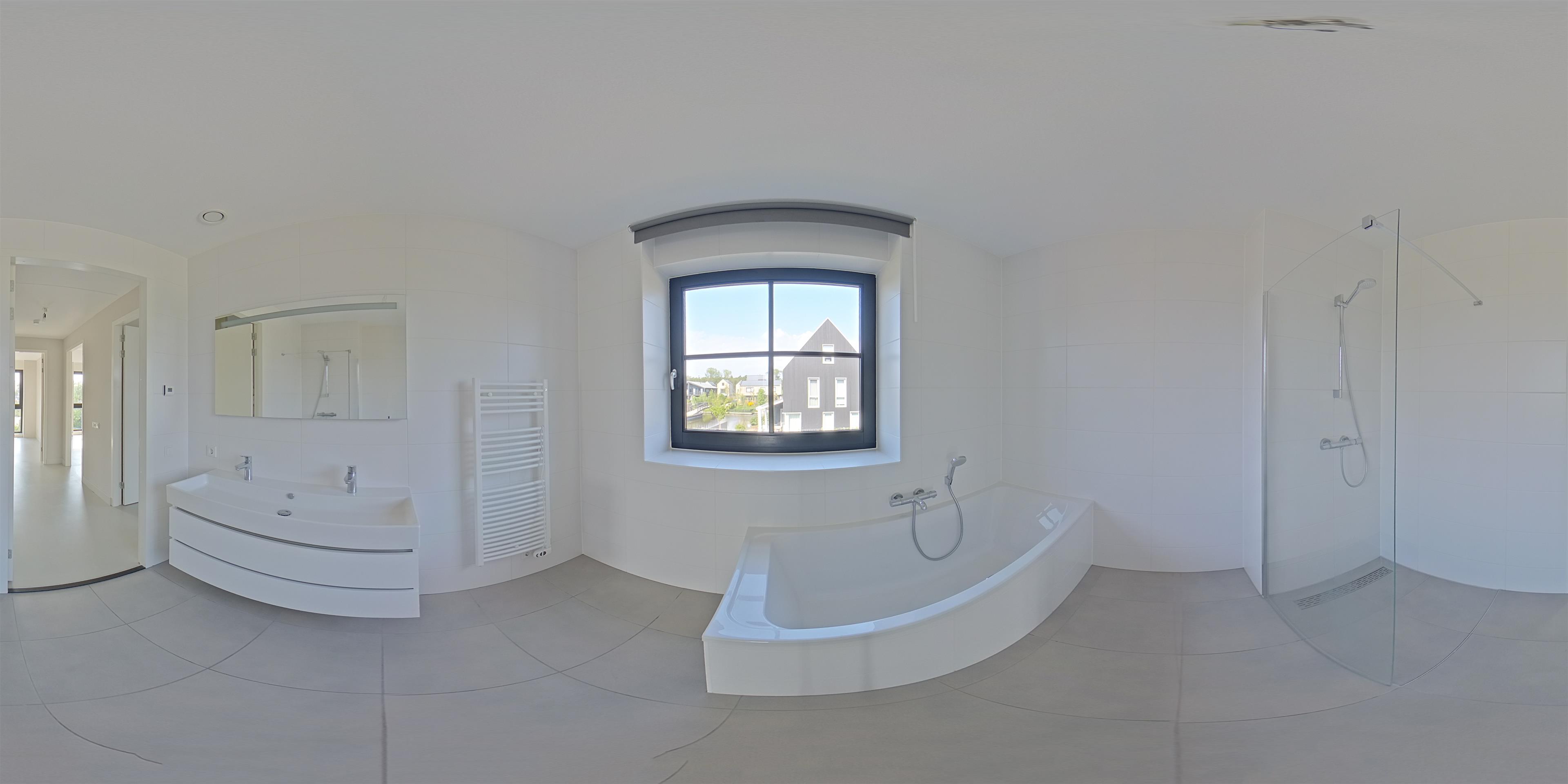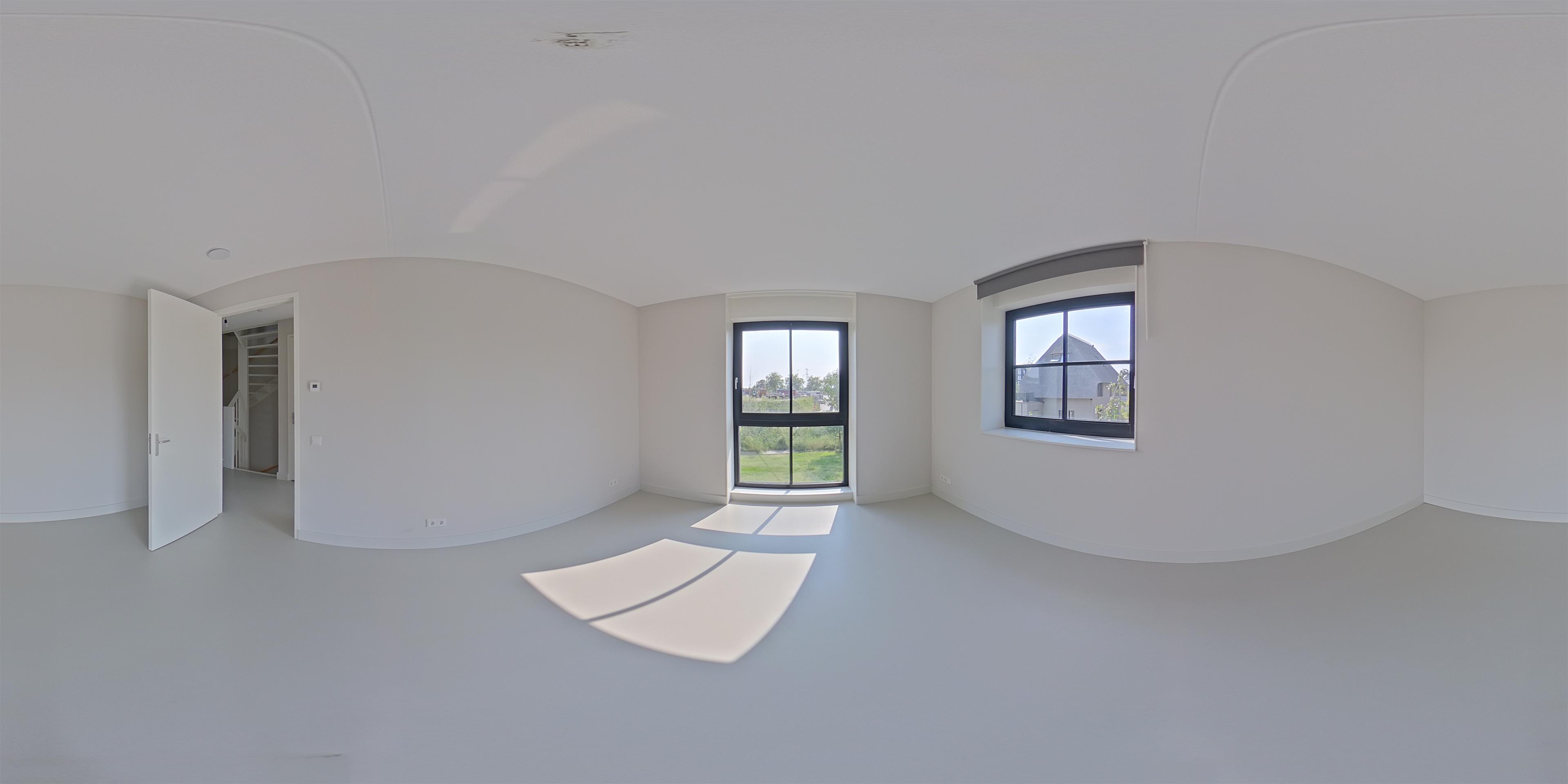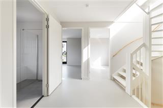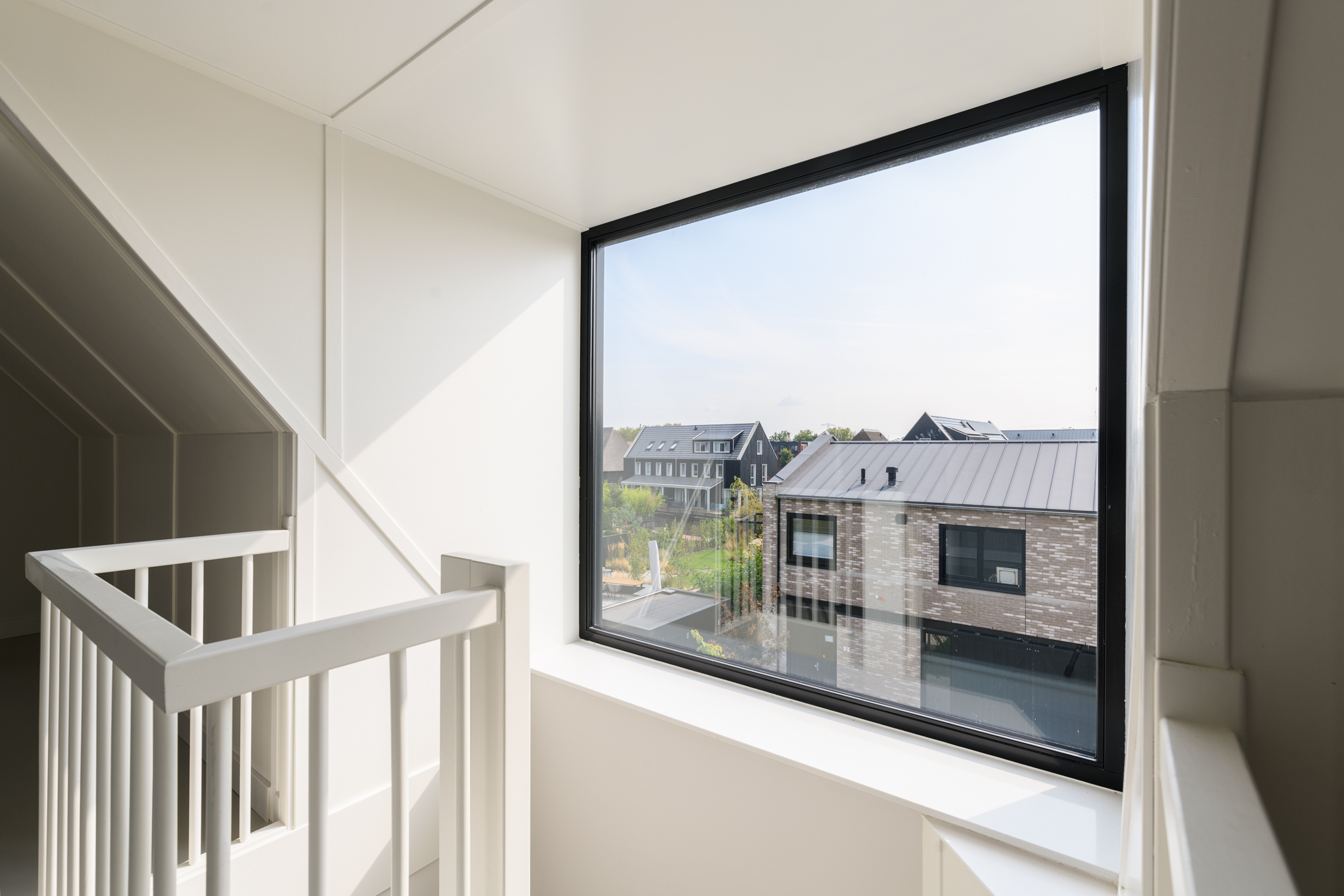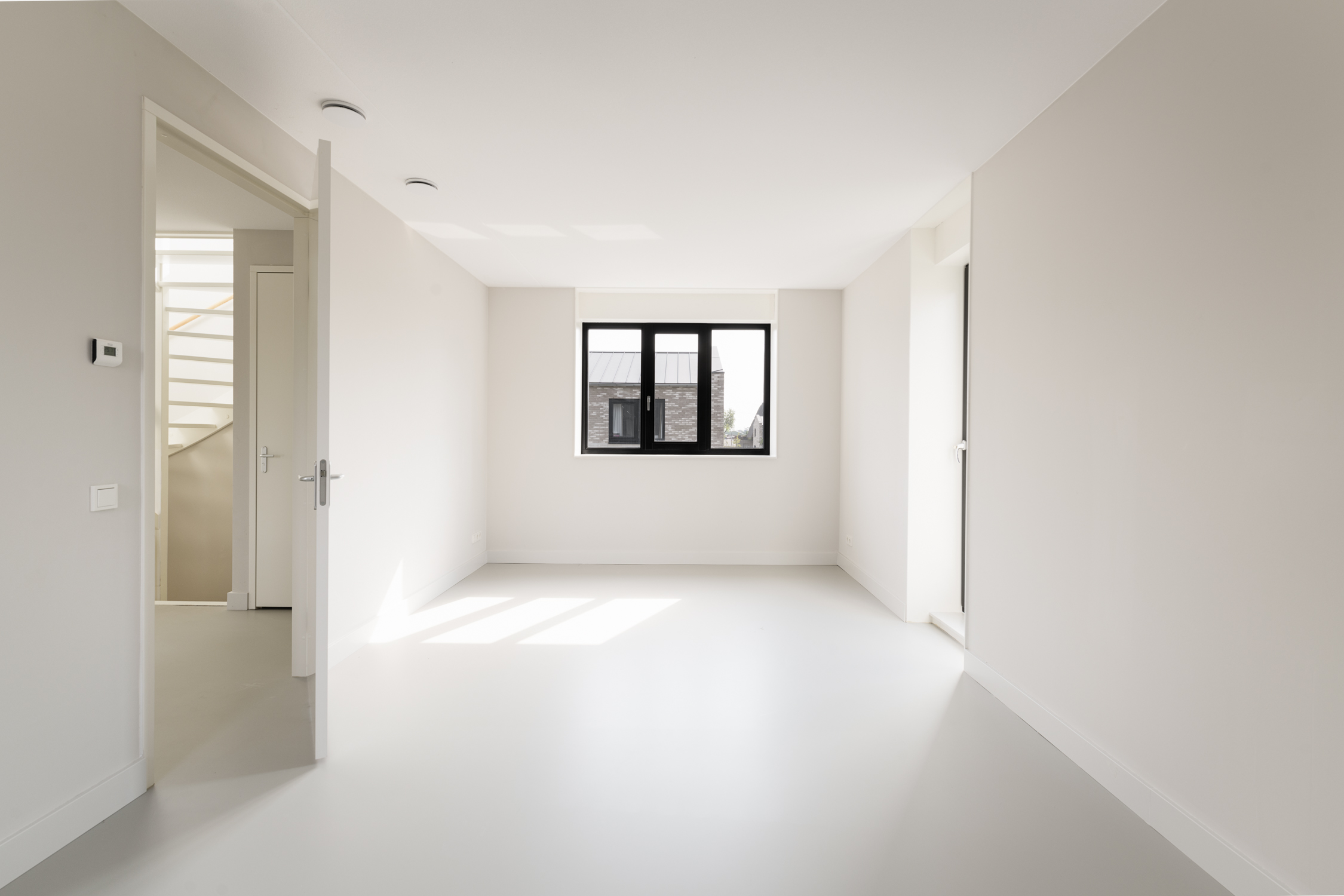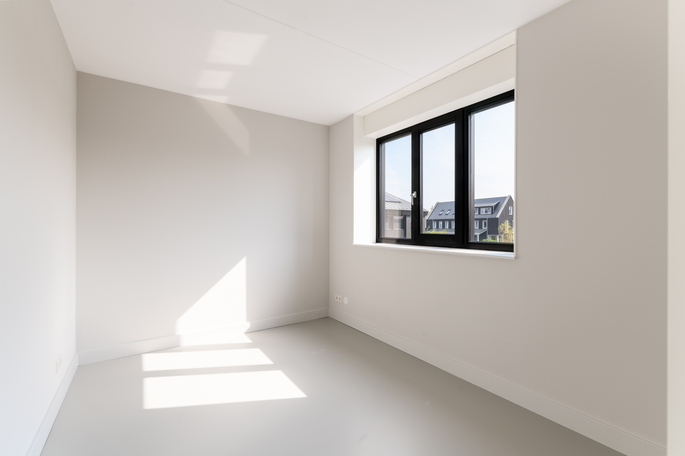 Riante slaapkamers naar boven Riante slaapkamers Stijlvolle badkamer Ruim en lichte slaapkamers De eerste verdieping biedt drie ruime, lichte slaapkamers met een moderne gietvloer en vloerverwarming. Elke kamer heeft een eigen ruimtethermostaat, zodat het comfort perfect af te stemmen is. De badkamer is uitgevoerd in een rustige, lichte kleurstelling en voorzien van een inloopdouche, ligbad en dubbel wastafelmeubel. Daarnaast is er een separaat toilet op de overloop. De tweede verdieping is verrassend ruim en biedt plaats aan nog eens twee grote slaapkamers of werkruimtes, ideaal voor gezinnen of thuiswerkers. Hier vind je ook de technische ruimte met aansluitingen voor de wasmachine, warmtepomp en WTW.