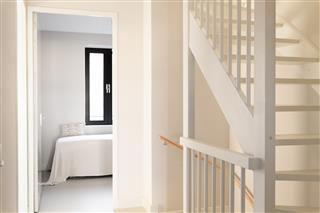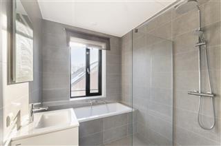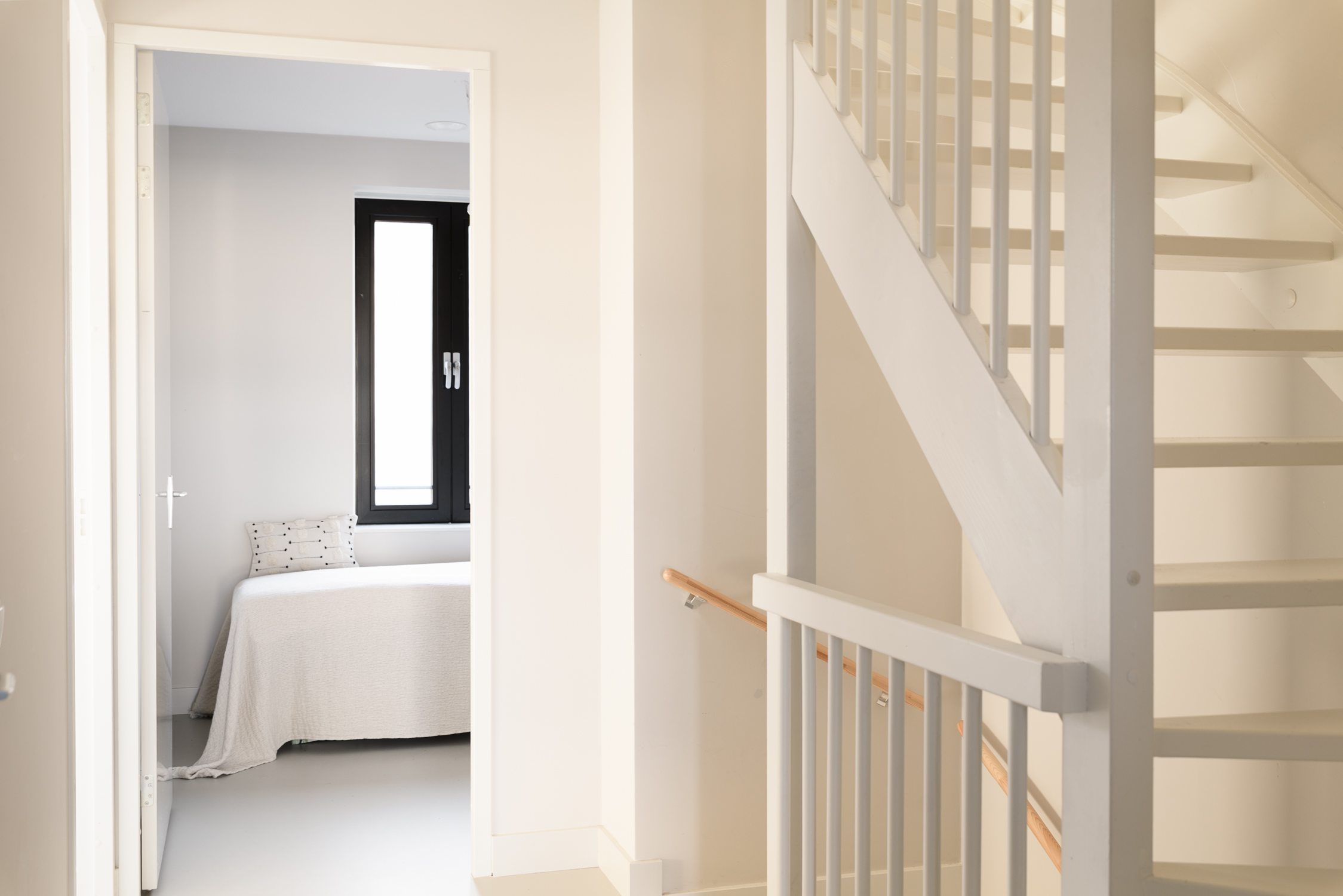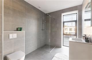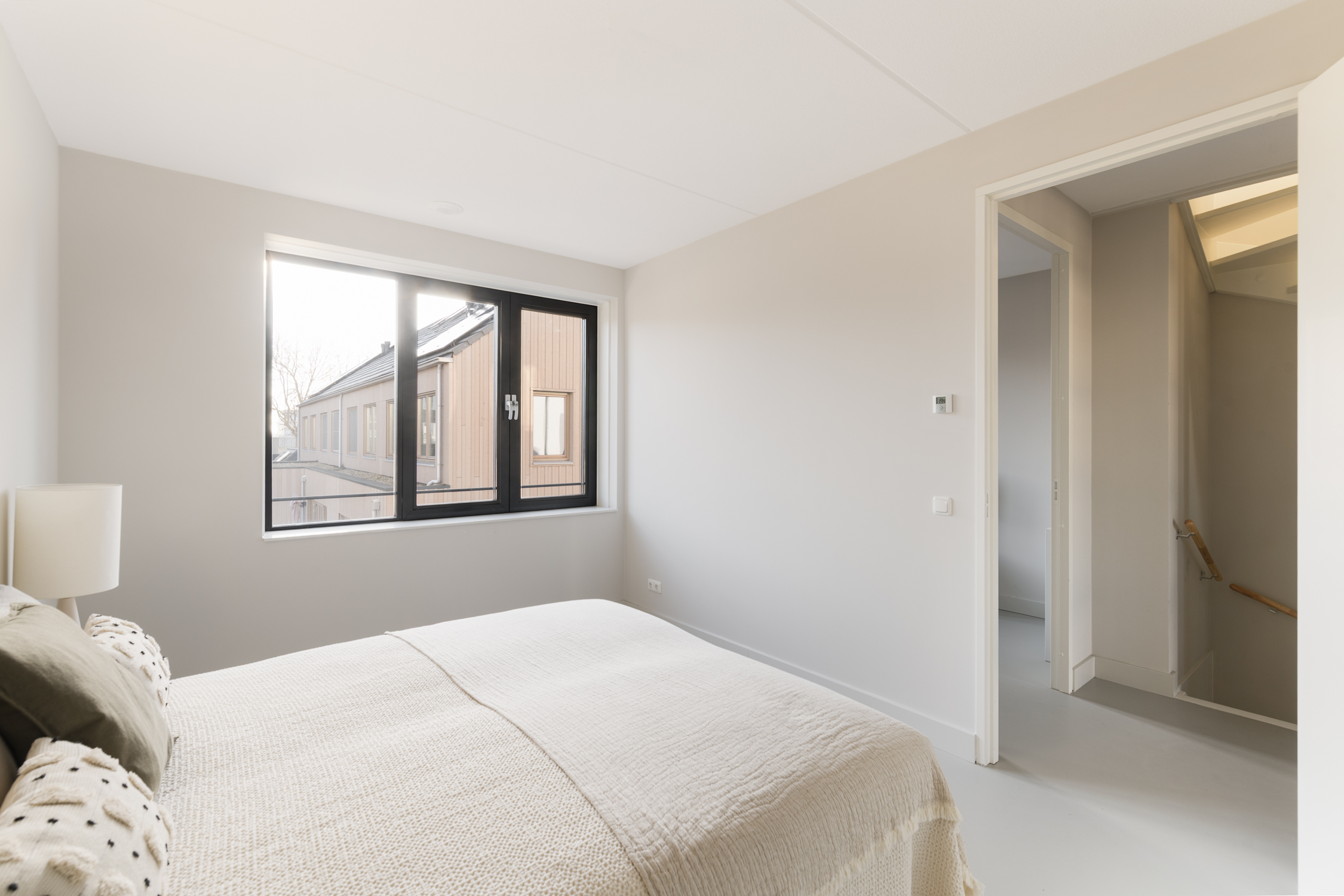 5 royale slaapkamers naar boven 5 royale slaapkamers Moderne badkamer Deze woning telt maar liefst vijf slaapkamers, verdeeld over twee verdiepingen. Op de eerste verdieping bevinden zich drie ruime kamers met lichte gietvloer en vloerverwarming. De master bedroom beschikt over een schuifpui naar een breed balkon aan de achterzijde, een rustige plek om buiten te genieten. De moderne badkamer is voorzien van een inloopdouche, dubbel wastafelmeubel en toilet. De tweede verdieping biedt nog twee slaapkamers, badkamer met inloopdouche en wastafelmeubel en een berging met warmtepomp, WTW-installatie en wasmachineaansluiting.