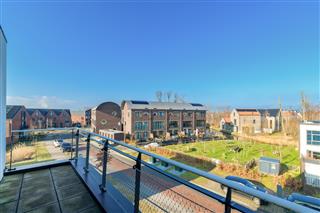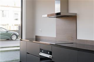 Moderne keuken naar boven Moderne keuken Diverse inbouwapparatuur Eigen parkeerplaats nabij de woning De open keuken aan de voorzijde van de woning is een echte eyecatcher. Met volop werkbladruimte, veel kastruimte en hoogwaardige inbouwapparatuur is dit een keuken die uitnodigt tot koken én samenzijn. De dubbele openslaande deuren naar de voortuin zorgen voor veel licht en maken het mogelijk om in de ochtendzon te ontbijten aan je eigen zitje buiten. Deze keuken combineert functionaliteit met luxe, en vormt een perfecte balans tussen design en comfort.