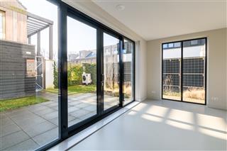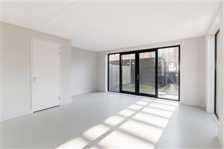 Tuingerichte woonkamer naar boven Tuingerichte woonkamer Heerlijk licht Eigen parkeerplaats nabij de woning De woonkamer is het hart van de woning en ademt ruimte en licht. Dankzij de grote openslaande deuren aan de achterzijde wordt binnen en buiten naadloos met elkaar verbonden. De stijlvolle houten visgraatvloer met vloerverwarming geeft de ruimte warmte en karakter. Elk vertrek in de woning heeft een eigen thermostaat, waardoor je het klimaat per kamer regelt. De woonkamer biedt directe toegang tot de achtertuin, een heerlijke plek om te ontspannen of gasten te ontvangen.