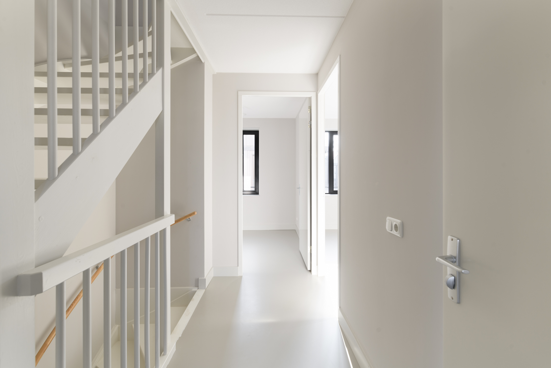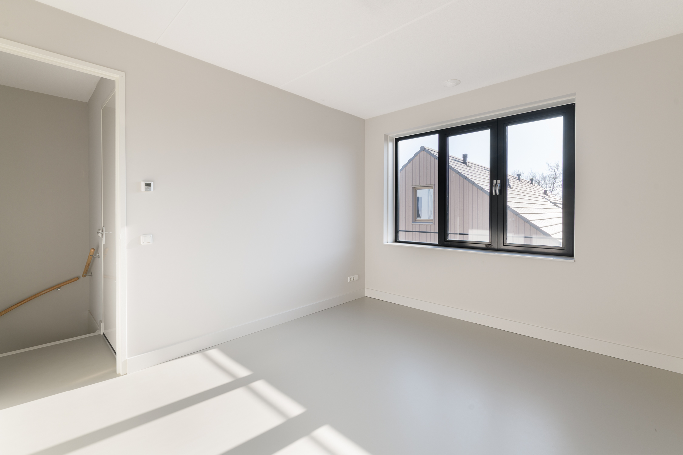 5 royale slaapkamers naar boven 5 royale slaapkamers 2 Moderne badkamer 5 ruime slaapkamers! Deze woning telt maar liefst vijf slaapkamers, verdeeld over twee verdiepingen. Op de eerste verdieping bevinden zich drie ruime kamers met lichte gietvloer en vloerverwarming. De master bedroom beschikt over een schuifpui naar een breed balkon aan de achterzijde, een rustige plek om buiten te genieten. De moderne badkamer is voorzien van een inloopdouche, dubbel wastafelmeubel en toilet. De tweede verdieping biedt nog twee slaapkamers, badkamer met inloopdouche, ligbad en wastafelmeubel en een berging met warmtepomp, WTW-installatie en wasmachineaansluiting.