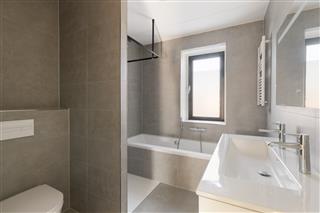 6 royale slaapkamers naar boven 6 royale slaapkamers Moderne badkamer Deze woning telt maar liefst zes slaapkamers, verdeeld over twee verdiepingen. Op de eerste verdieping bevinden zich drie ruime kamers met lichte gietvloer en vloerverwarming. De master bedroom beschikt over een schuifpui naar een breed balkon aan de achterzijde, een rustige plek om buiten te genieten. De moderne badkamer is voorzien van een inloopdouche, ligbad, dubbel wastafelmeubel en toilet. De tweede verdieping biedt nog drie slaapkamers en een berging met warmtepomp, WTW-installatie en wasmachineaansluiting.