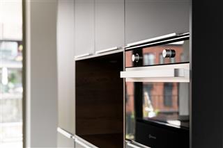 Moderne keuken naar boven Moderne keuken Alle apparatuur ingebouwd Kom er gezellig bij zitten De moderne keuken is volledig uitgerust met hoogwaardige inbouwapparatuur van Bauknecht en afgewerkt met een stijlvol composieten werkblad.