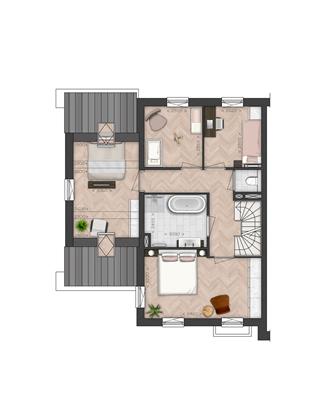 De eerste verdieping telt vier slaapkamers en een complete badkamer met douche, dubbele wastafel, ligbad en een separaat tweede toilet. Via een vaste trap kom je op de tweede verdieping, waar twee ruime kamers op je wachten. Ideaal als extra slaapkamers, werkkamer of hobbyruimte.