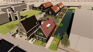 Direct naast de driekapper verrijst een blok van vier gezinswoningen, dwars op het Zuideinde geplaatst. Ook deze woningen hebben de achtertuin aan doorgaand vaarwater. De steiger en het stukje eigen waterpartij vormen een rijk bezit voor het hele gezin. Dit staat garant voor het hele jaar waterpret. Stap op de sup, in een bootje of - wie weet - op de schaats. Gewoon vanaf huis!
