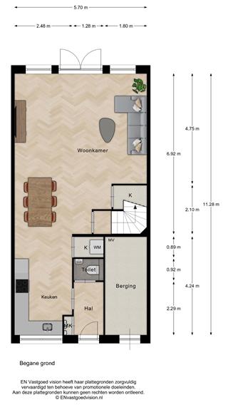 De woning biedt een praktische en overzichtelijke indeling, met naast de entree een handige inpandige (fietsen-)berging met technische ruimte. Op de begane grond gaan in de leefruimte de woonkamer en halfopen keuken in elkaar over. De keuken bevindt zich aan de voorzijde en wordt casco opgeleverd, zodat je deze helemaal naar eigen smaak kunt inrichten. In de keuken is een aparte wasruimte, nog meer bergruimte bevindt zich in de woonkamer, met extra berging onder de trap.