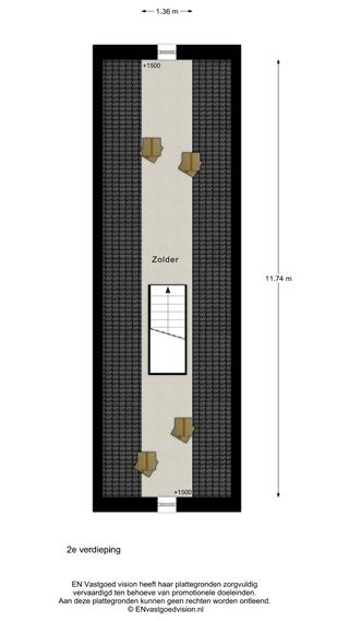 Zolder: bergvliering over de volle breedte, bereikbaar via vaste trap en voorzien van gevel- en dakramen. Mogelijkheid extra slaap- of werkkamer(s).