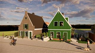 Aan de voorzijde van het terrein, direct aan het Zuideinde, verrijzen twee vrijstaande woningen. Elk met een eigen karakter en perfect passend in de bestaande lintbebouwing van Westzaan. Bouwnummer 02 staat volledig vrij, met tuin rondom, en is de grootste woning binnen het plan. Parkeren kan op eigen erf, aan de achterzijde.