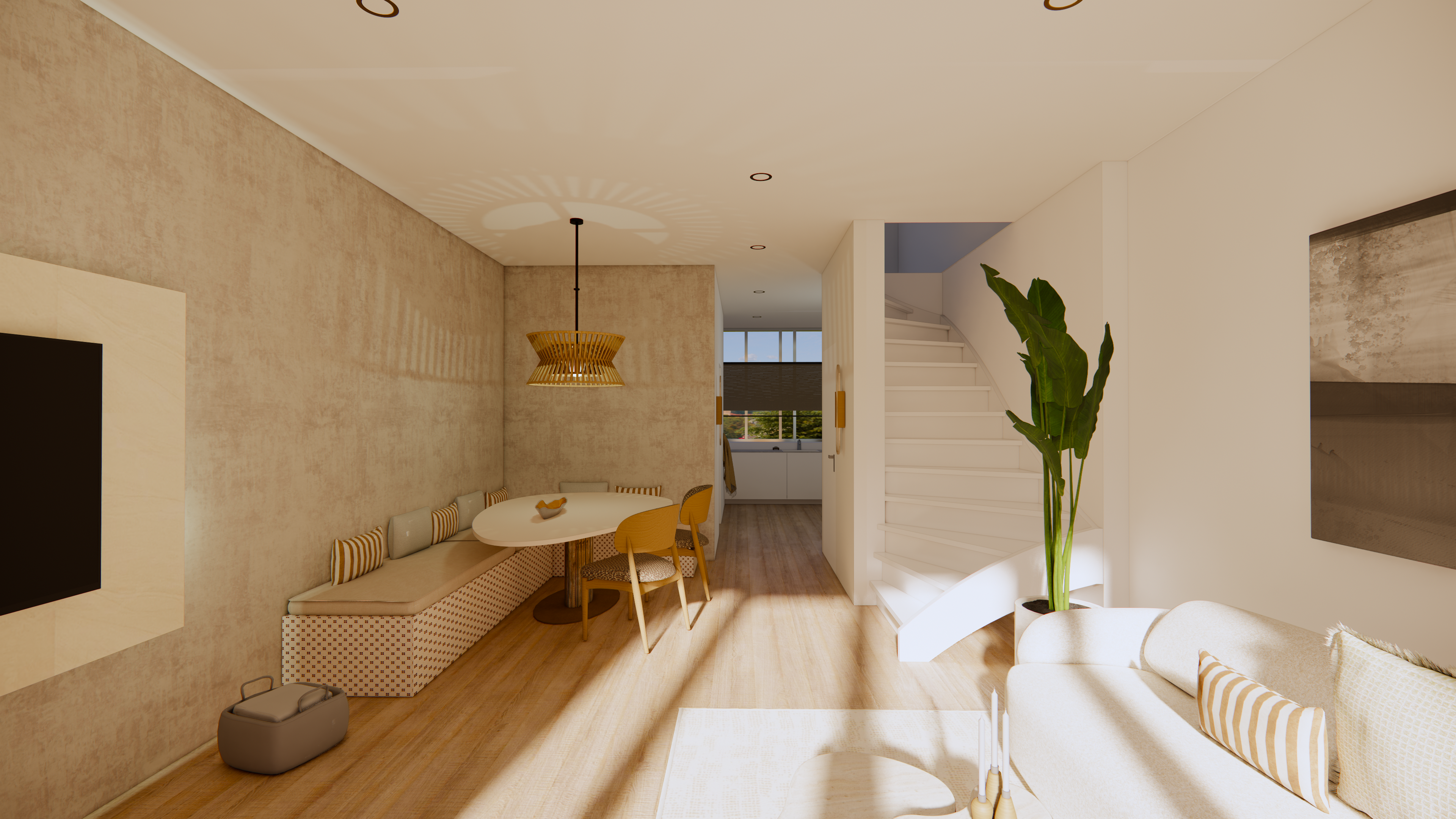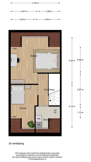 Tweede verdieping: overloop. [Technische en facilitaire ruimte met aansluitingen wasmachine en -droger.] Mogelijkheid geheel open doorzonvertrek als vierde of uitbreiding met vijfde slaapkamer.